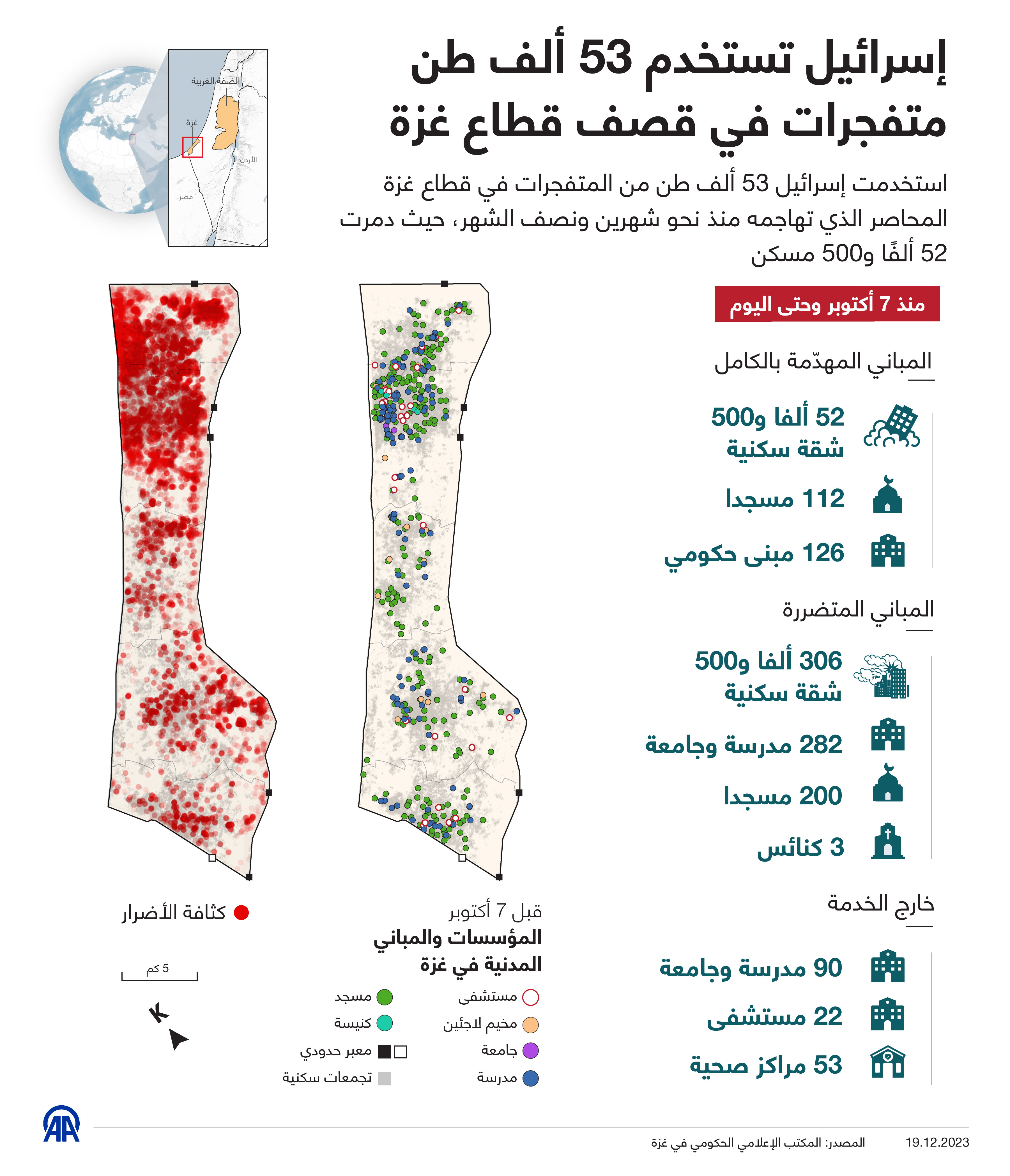إسرائيل تستخدم 53 ألف طن متفجرات في قصف قطاع غزة