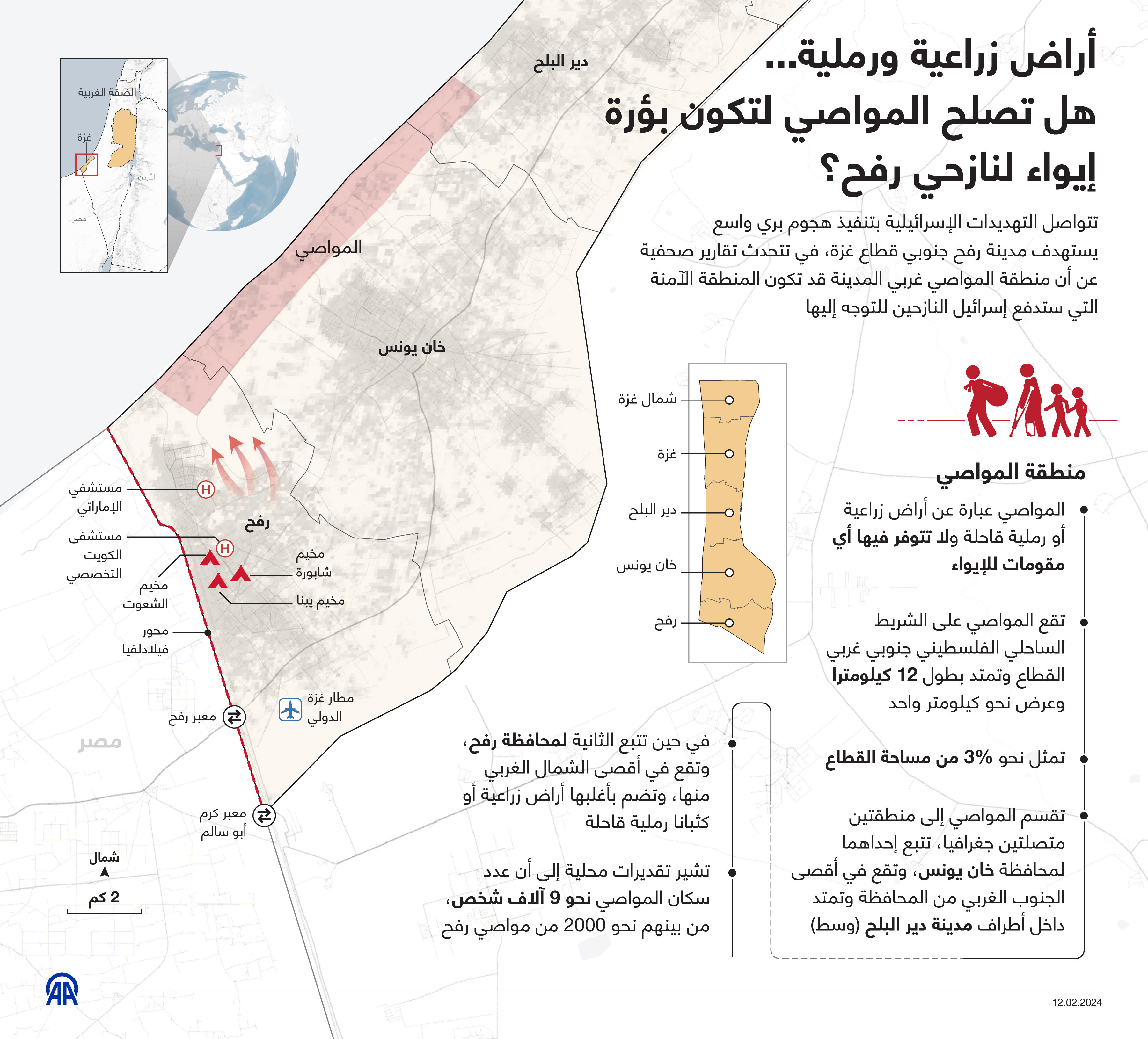 تتواصل التهديدات الإسرائيلية بتنفيذ هجوم بري واسع يستهدف مدينة رفح جنوبي قطاع غزة، في تتحدث تقارير صحفية عن أن منطقة المواصي غربي المدينة قد تكون المنطقة الآمنة التي ستدفع إسرائيل النازحين للتوجه إليها