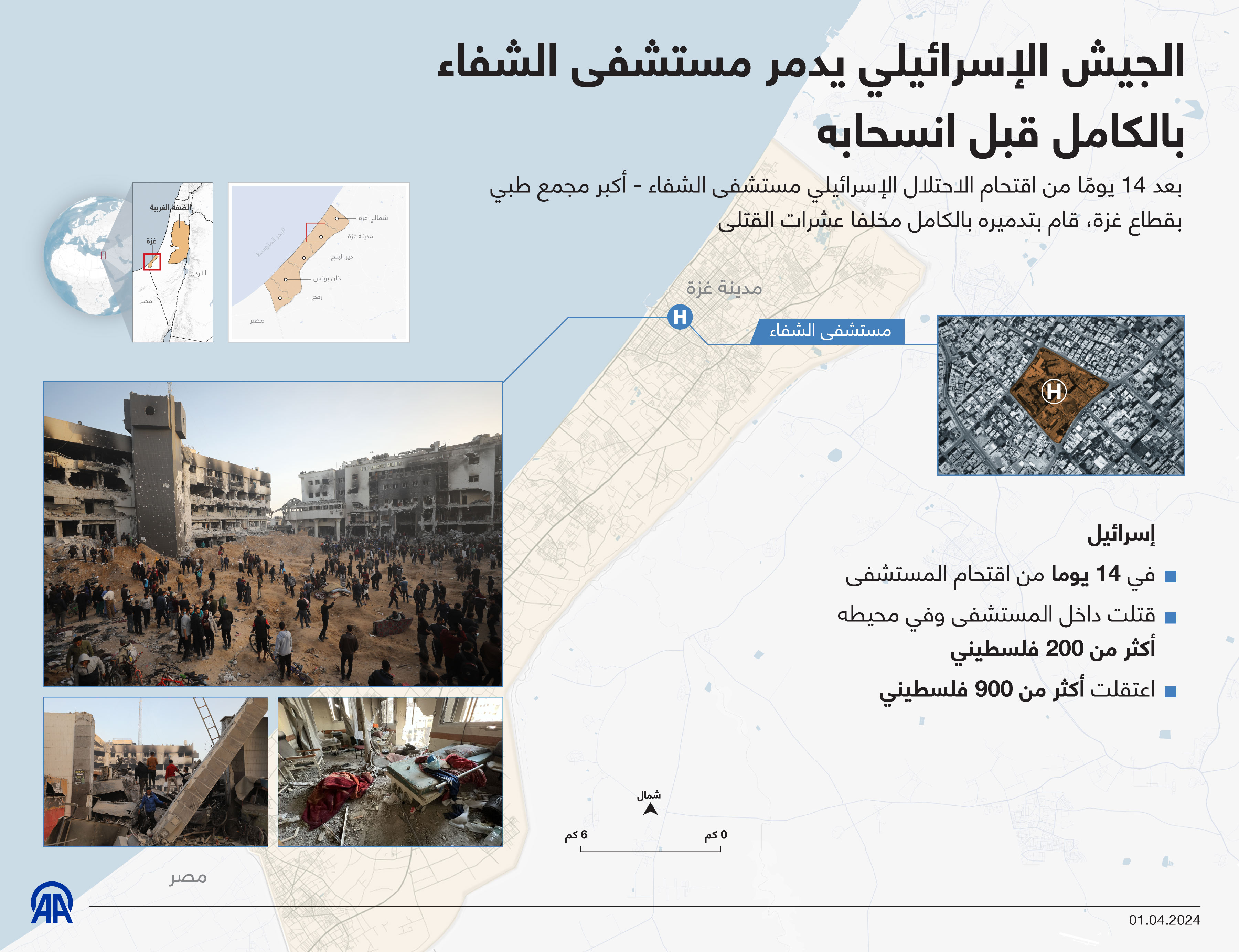 الجيش الإسرائيلي يدمر مستشفى الشفاء بالكامل قبل انسحابه