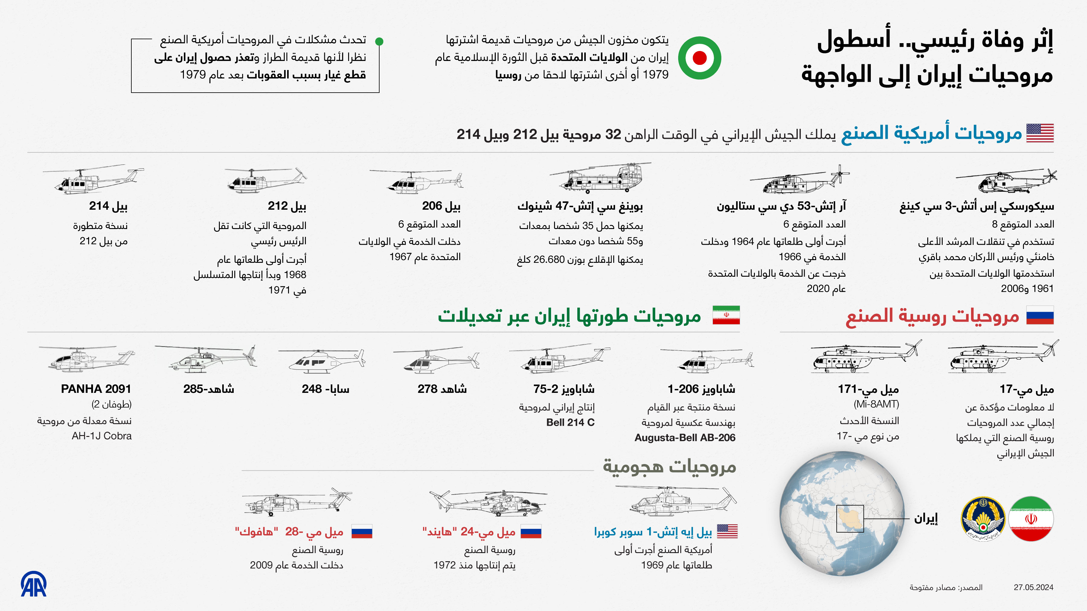 إثر وفاة رئيسي.. أسطول مروحيات إيران إلى الواجهة