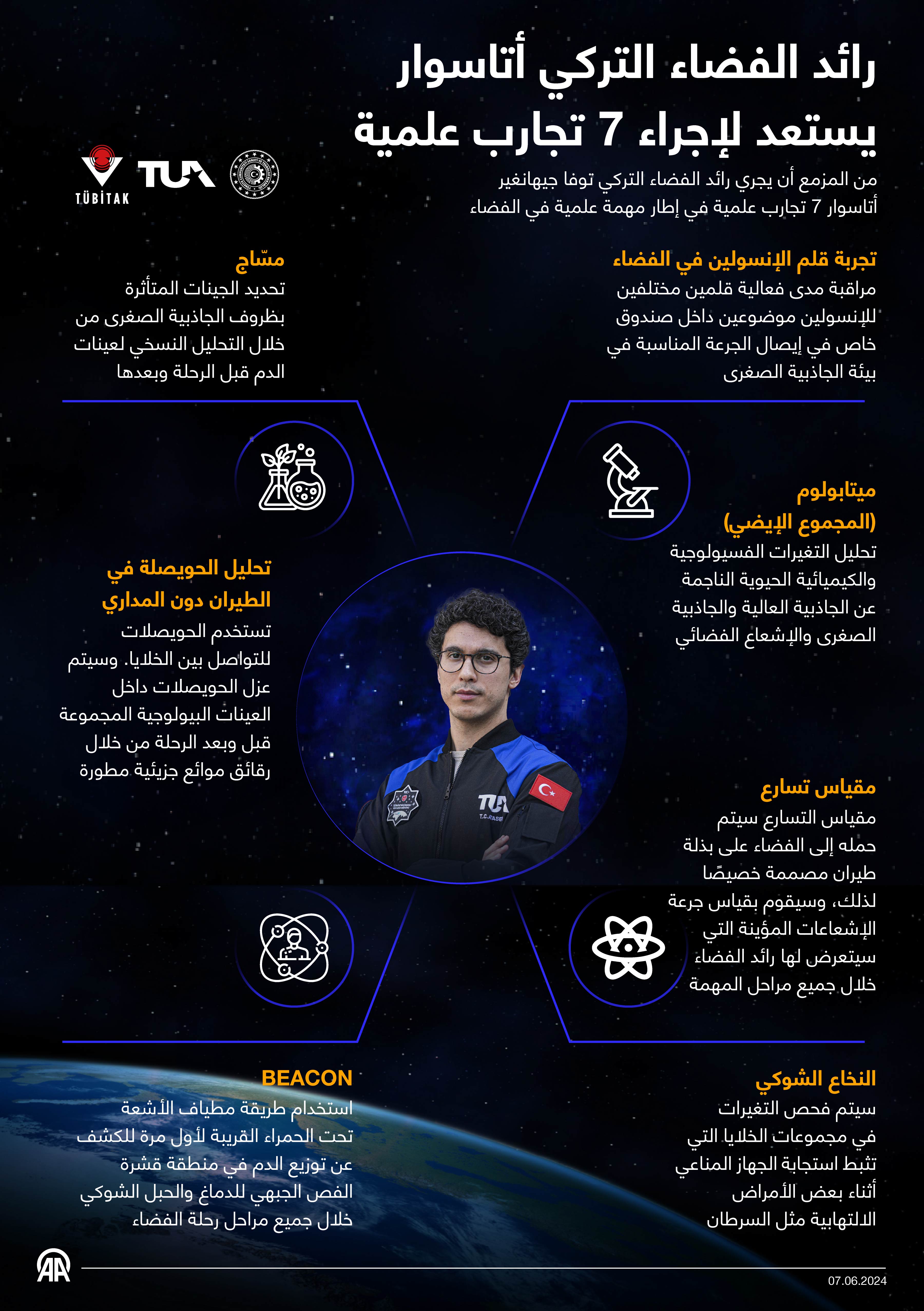 رائد الفضاء التركي أتاسوار يستعد لإجراء 7 تجارب علمية