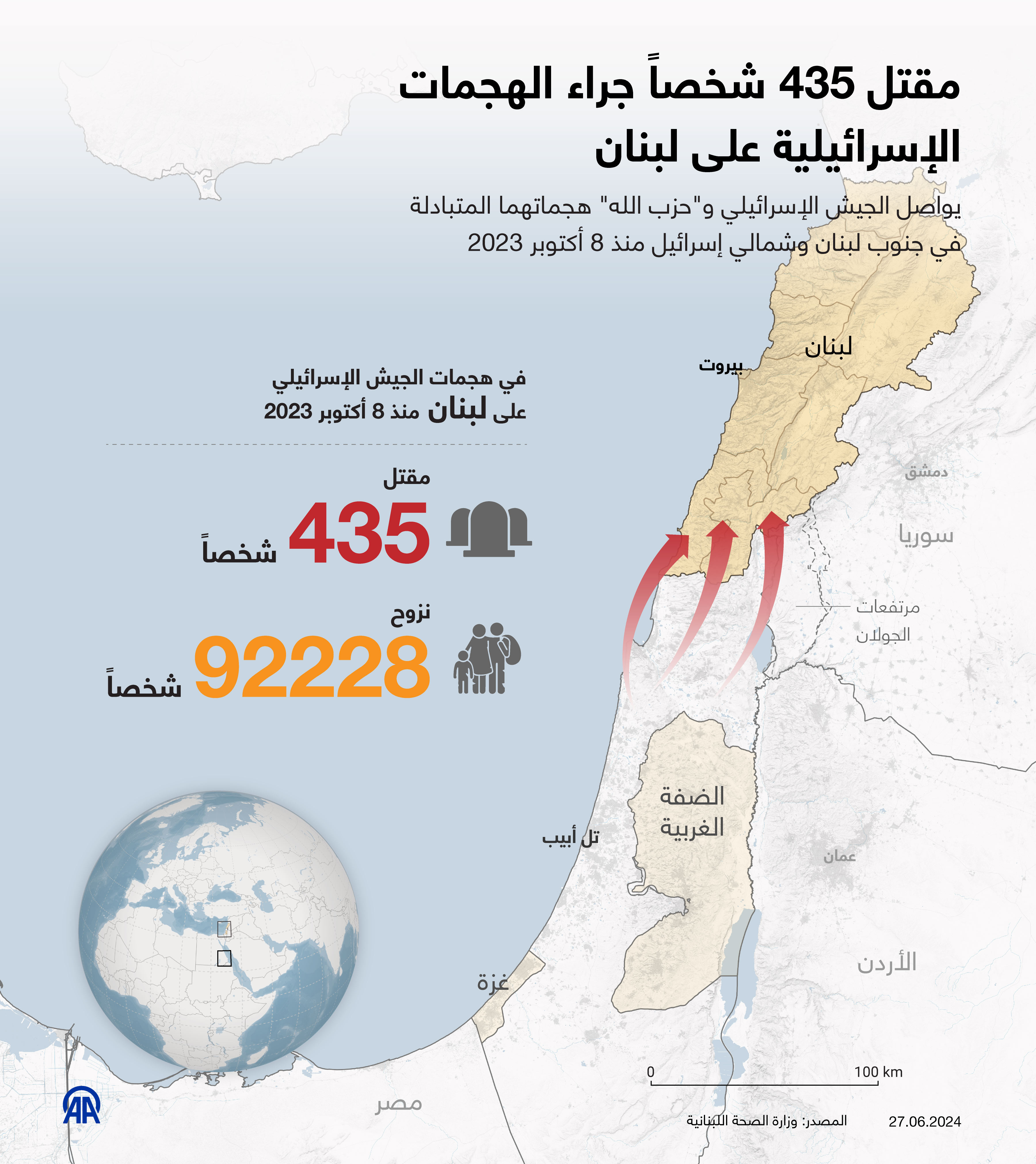 مقتل 435 شخصاً جراء الهجمات الإسرائيلية على لبنان