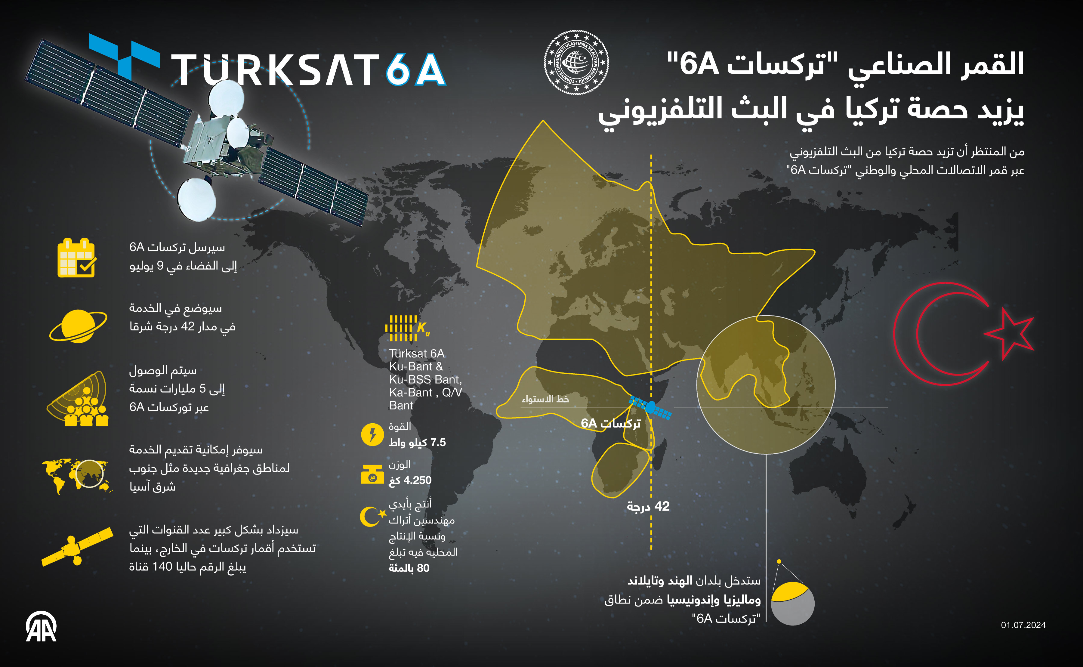 القمر الصناعي "تركسات 6A" يزيد حصة تركيا في البث التلفزيوني