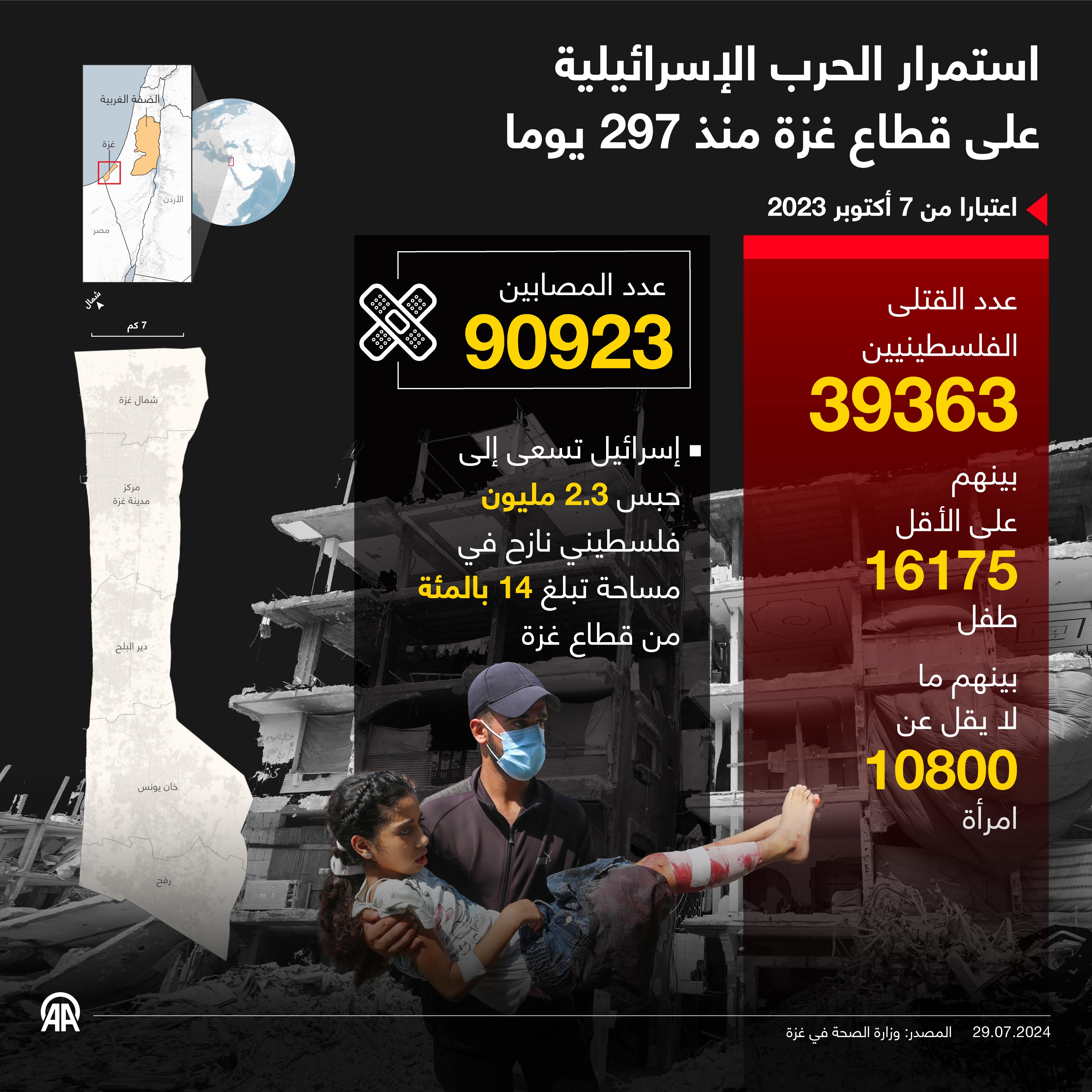 استمرار الحرب الإسرائيلية على قطاع غزة منذ 297 يوما