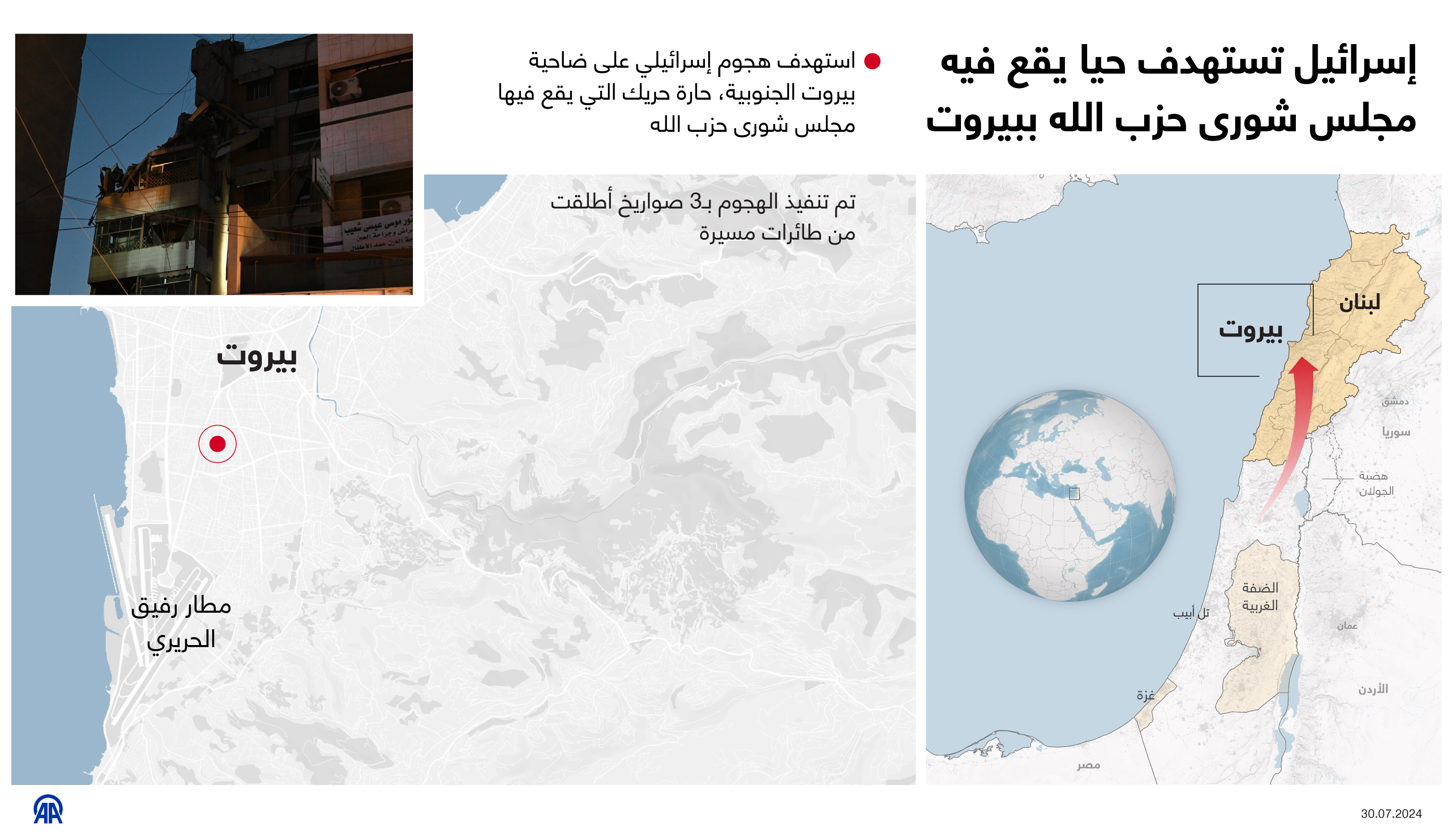 إسرائيل تستهدف حيا يقع فيه مجلس شورى حزب الله ببيروت