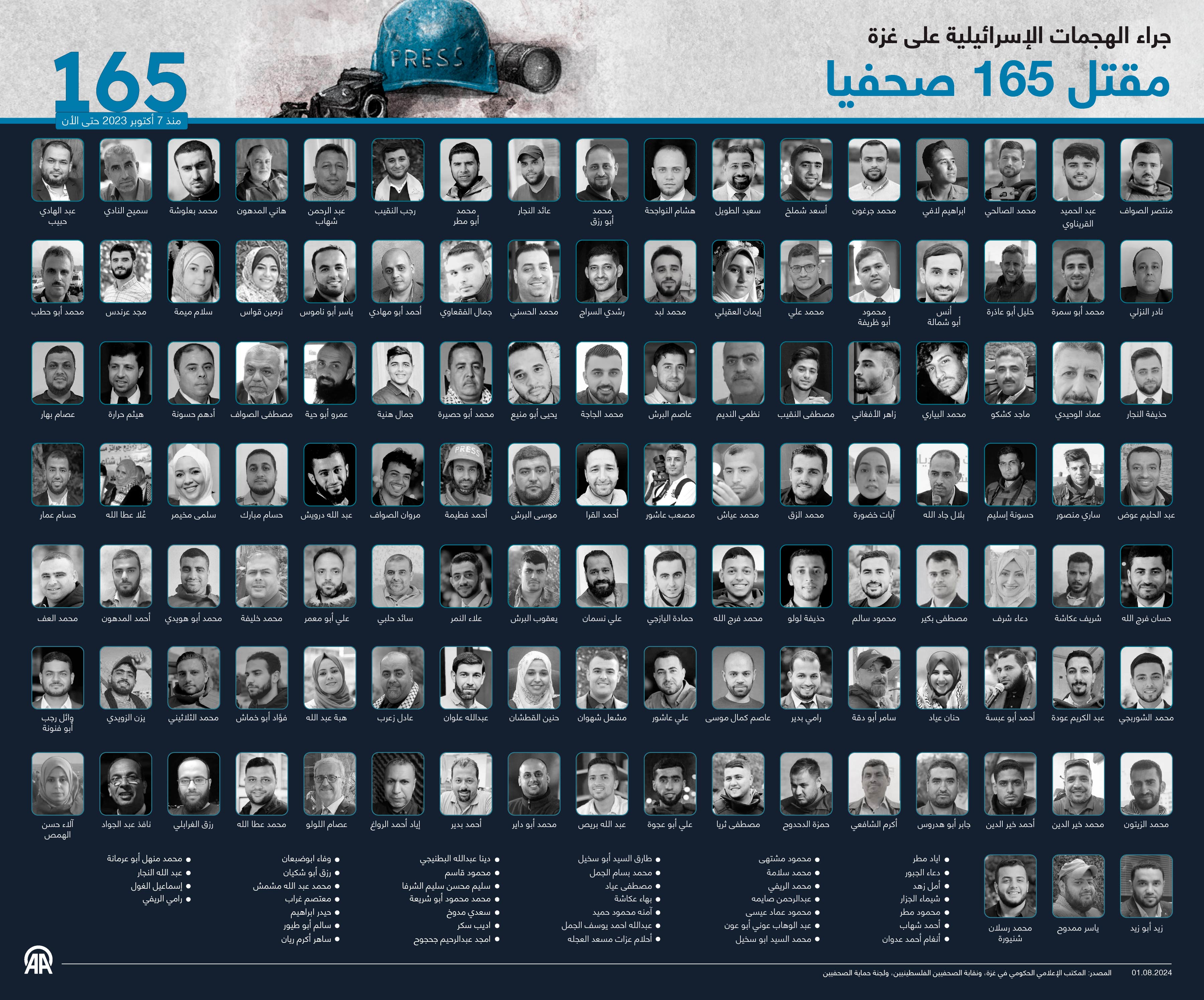 مقتل 165 صحفيا جراء الهجمات الإسرائيلية على غزة
