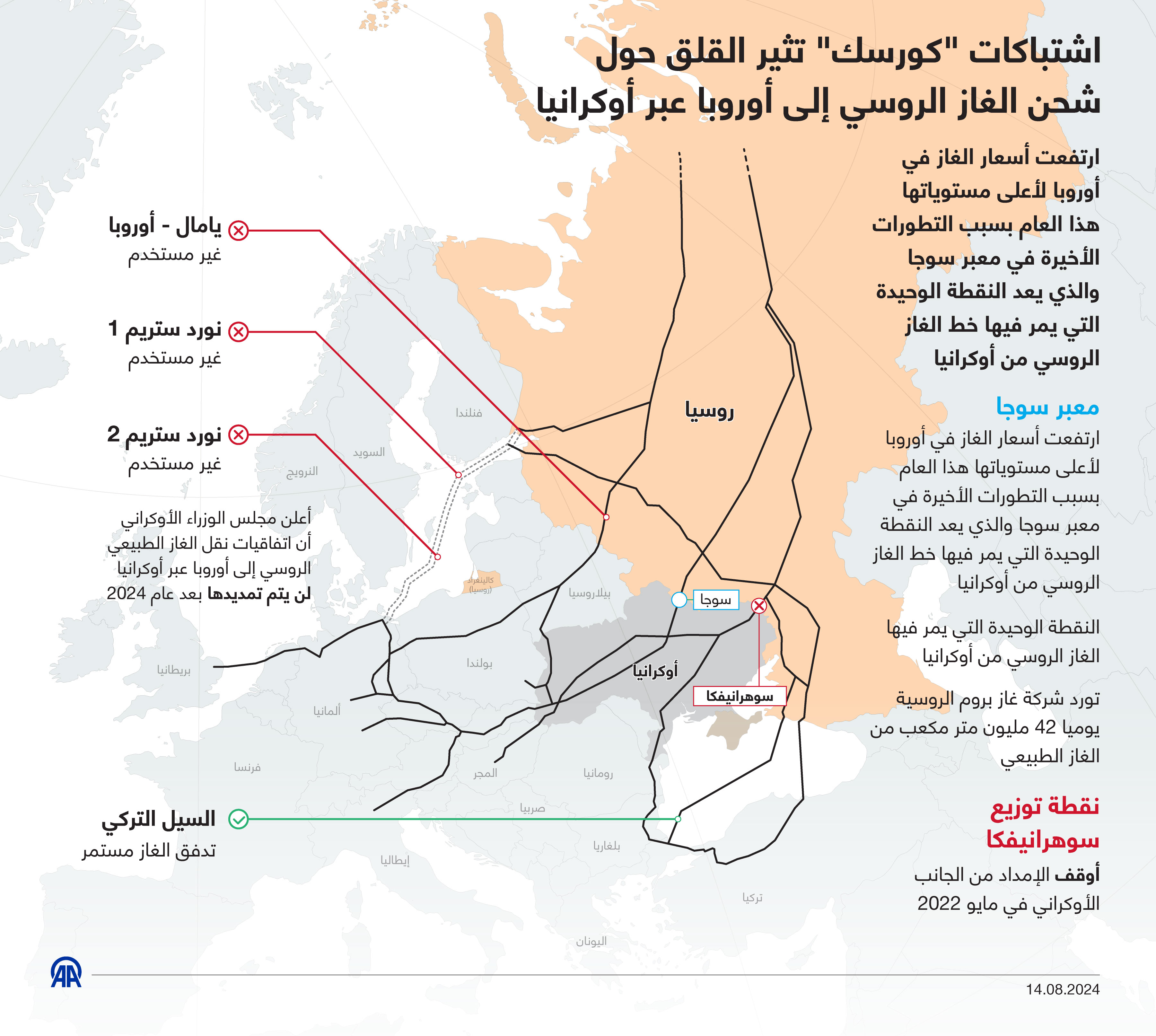 اشتباكات "كورسك" تثير القلق حول شحن الغاز الروسي إلى أوروبا عبر أوكرانيا