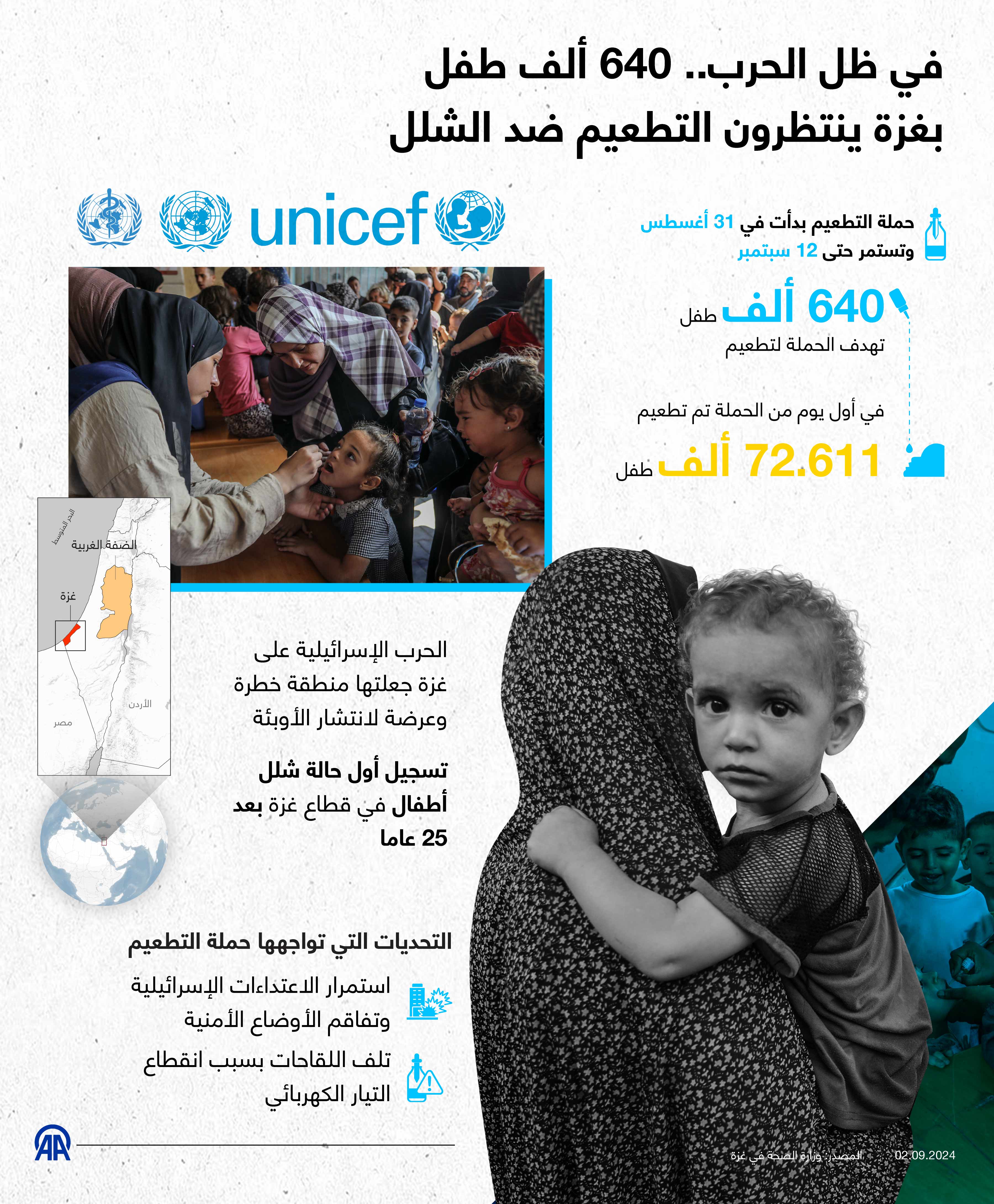 في ظل الحرب.. 640 ألف طفل بغزة ينتظرون التطعيم ضد الشلل