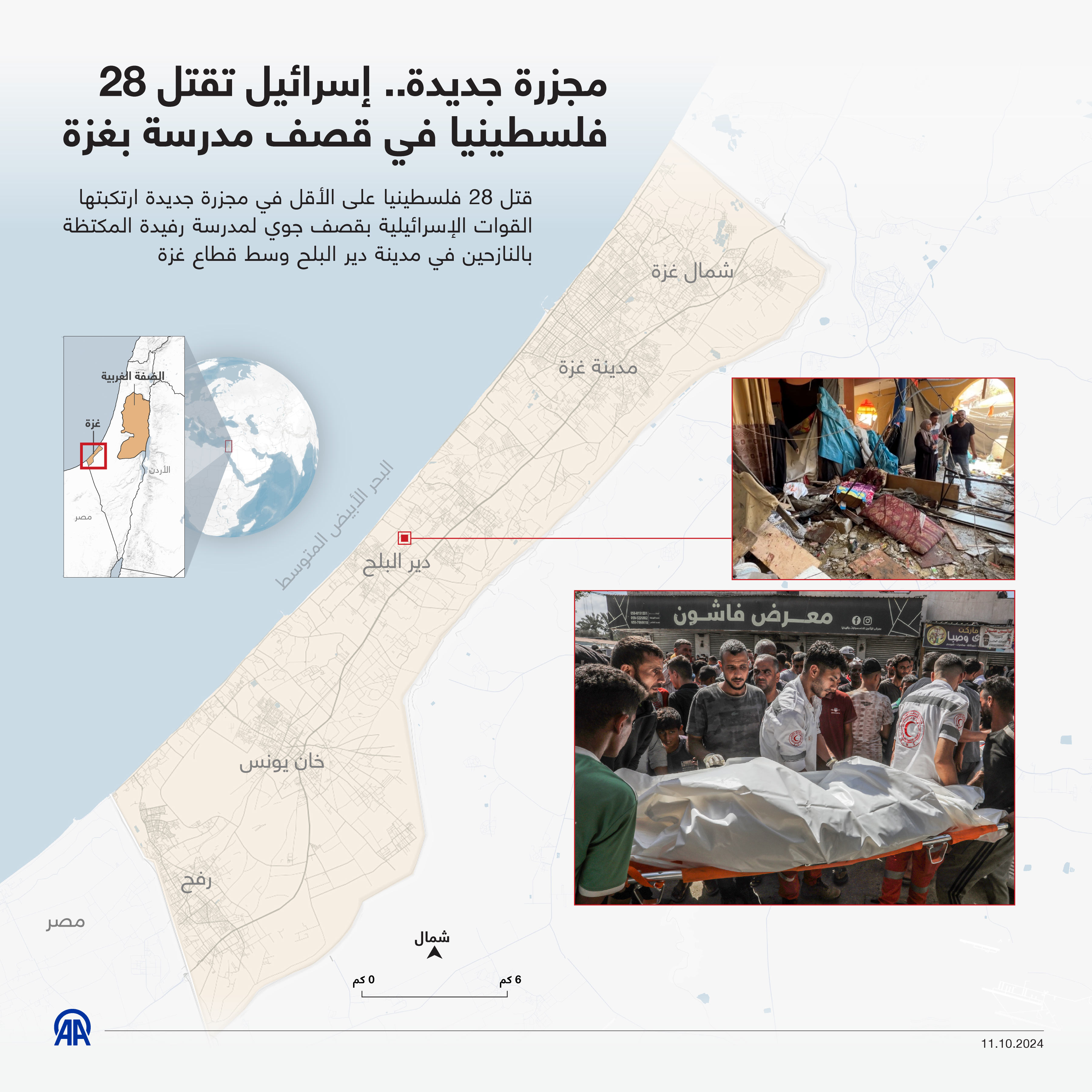 مجزرة جديدة.. إسرائيل تقتل 28 فلسطينيا في قصف مدرسة بغزة