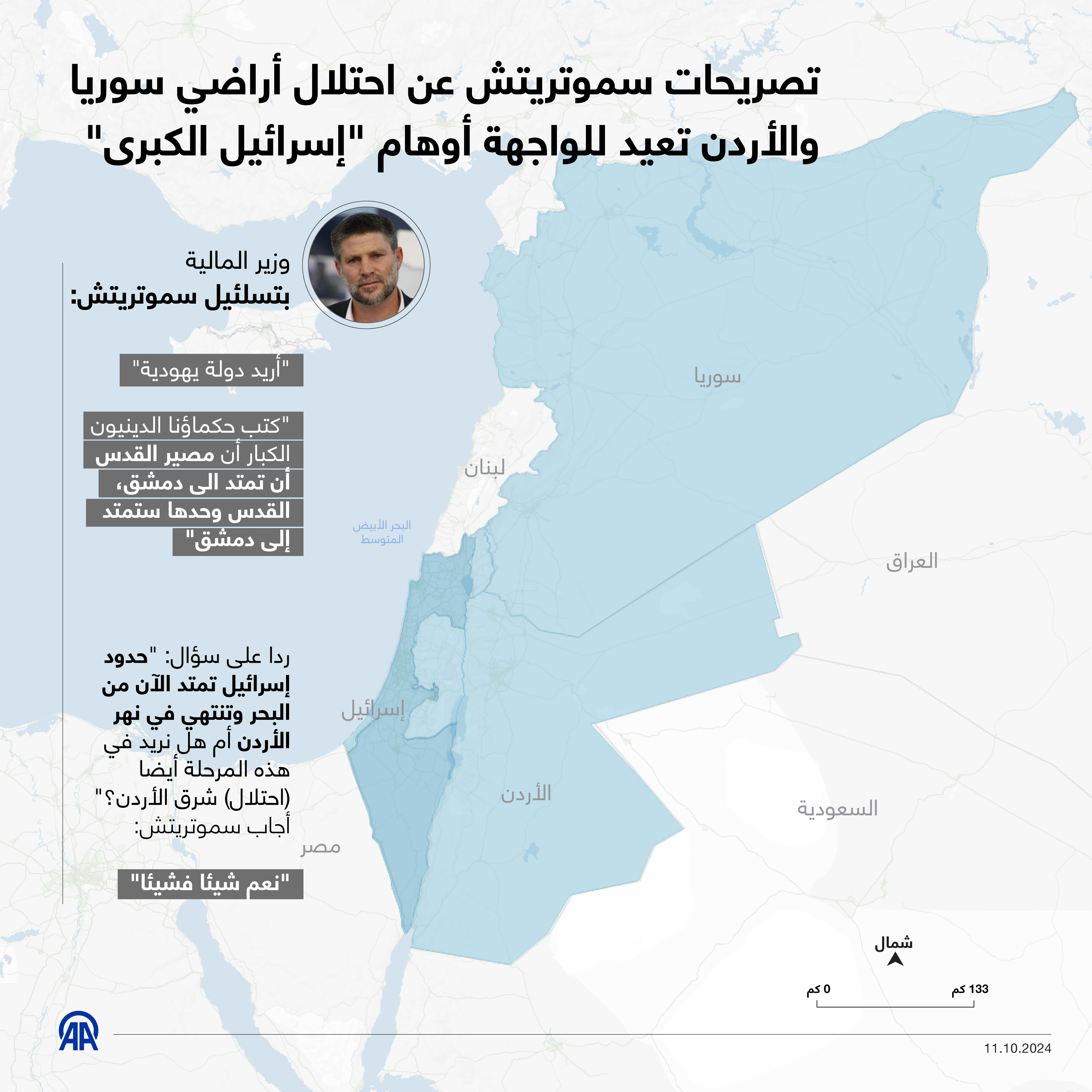تصريحات سموتريتش عن احتلال أراضي سوريا والأردن تعيد للواجهة أوهام "إسرائيل الكبرى"