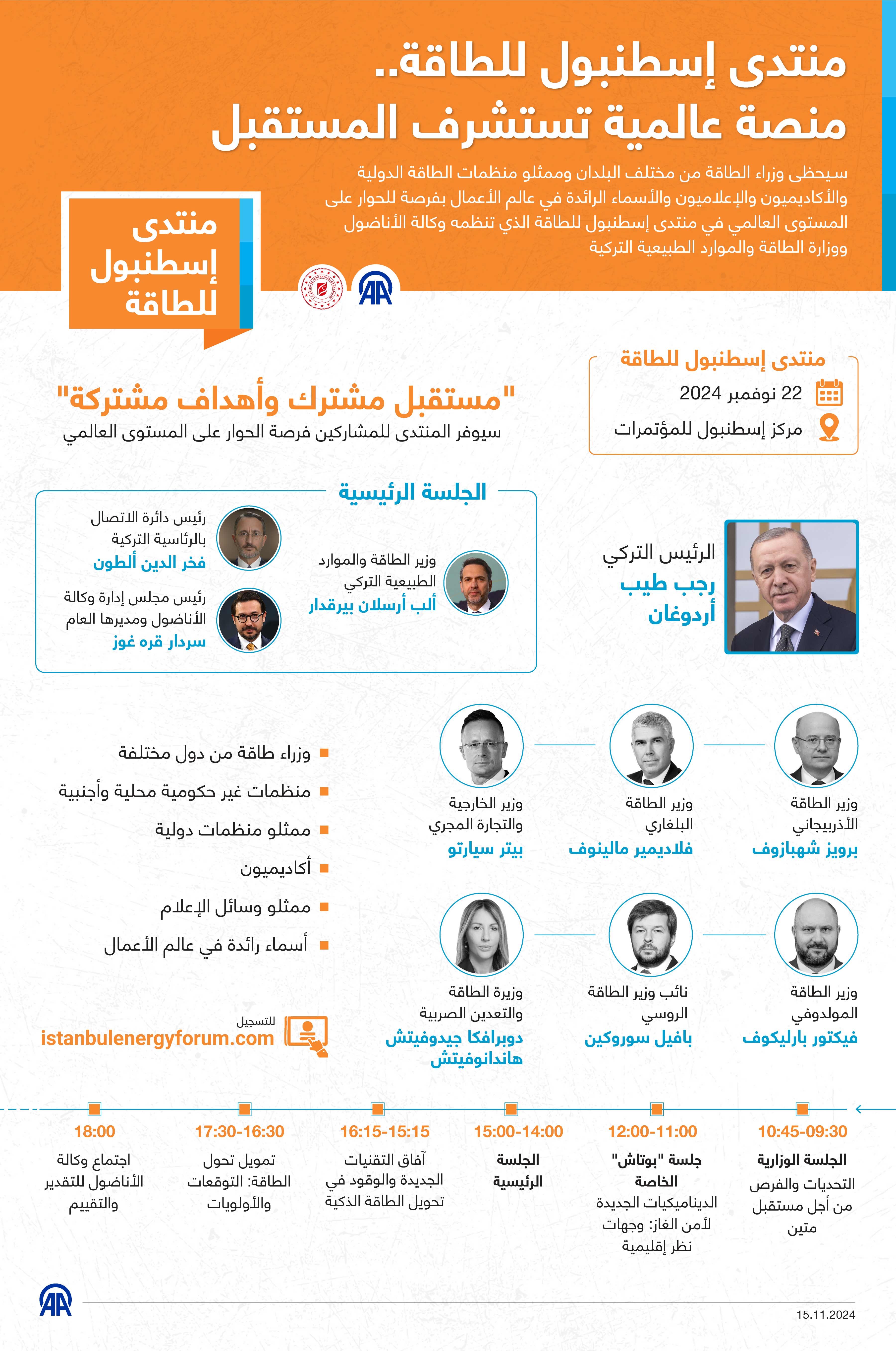 سيحظى وزراء الطاقة من مختلف البلدان وممثلو منظمات الطاقة الدولية والأكاديميون والإعلاميون والأسماء الرائدة في عالم الأعمال بفرصة للحوار على المستوى العالمي في منتدى إسطنبول للطاقة الذي تنظمه وكالة الأناضول ووزارة الطاقة والموارد الطبيعية التركية