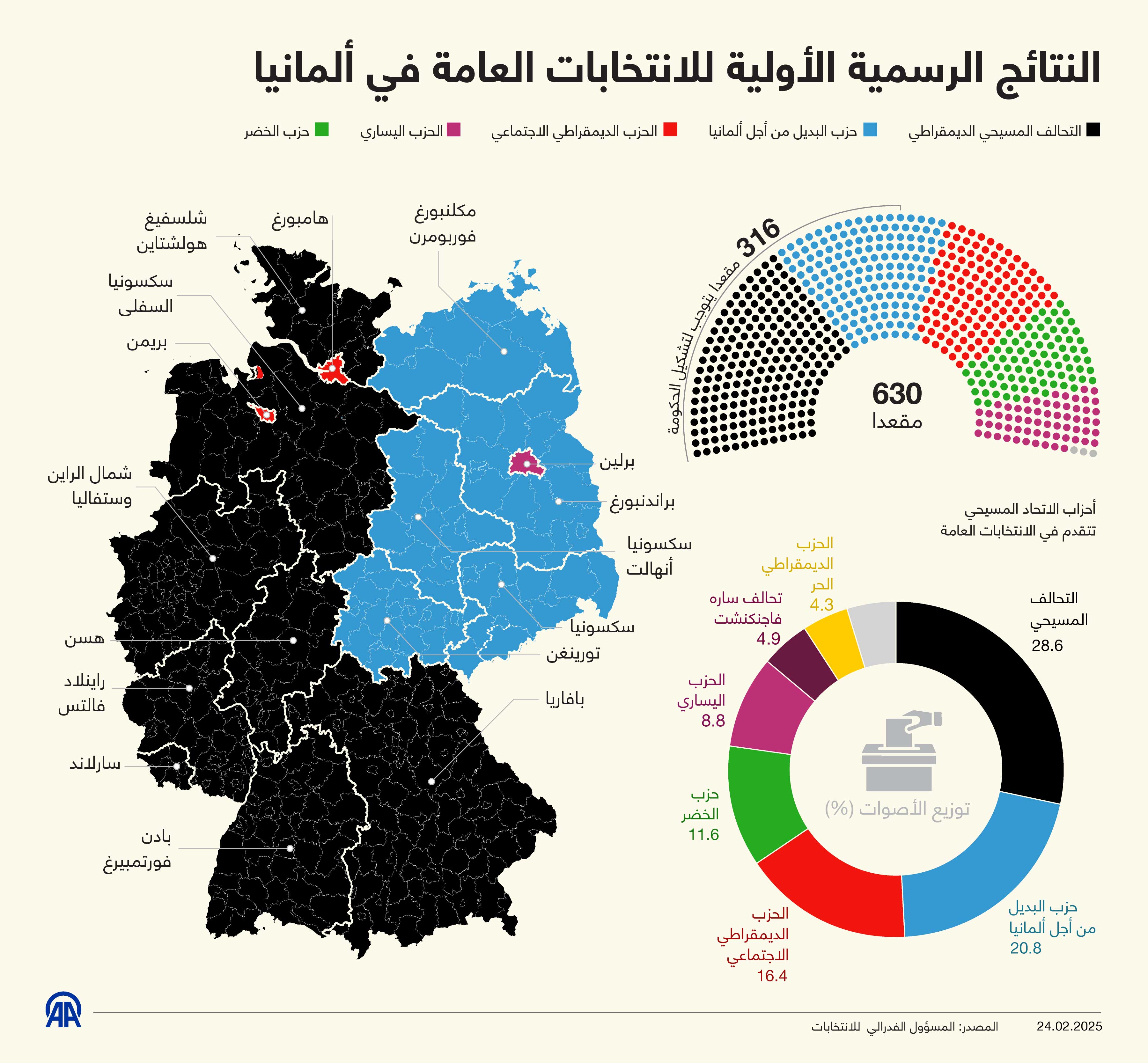 النتائج الرسمية الأولية للانتخابات العامة في ألمانيا