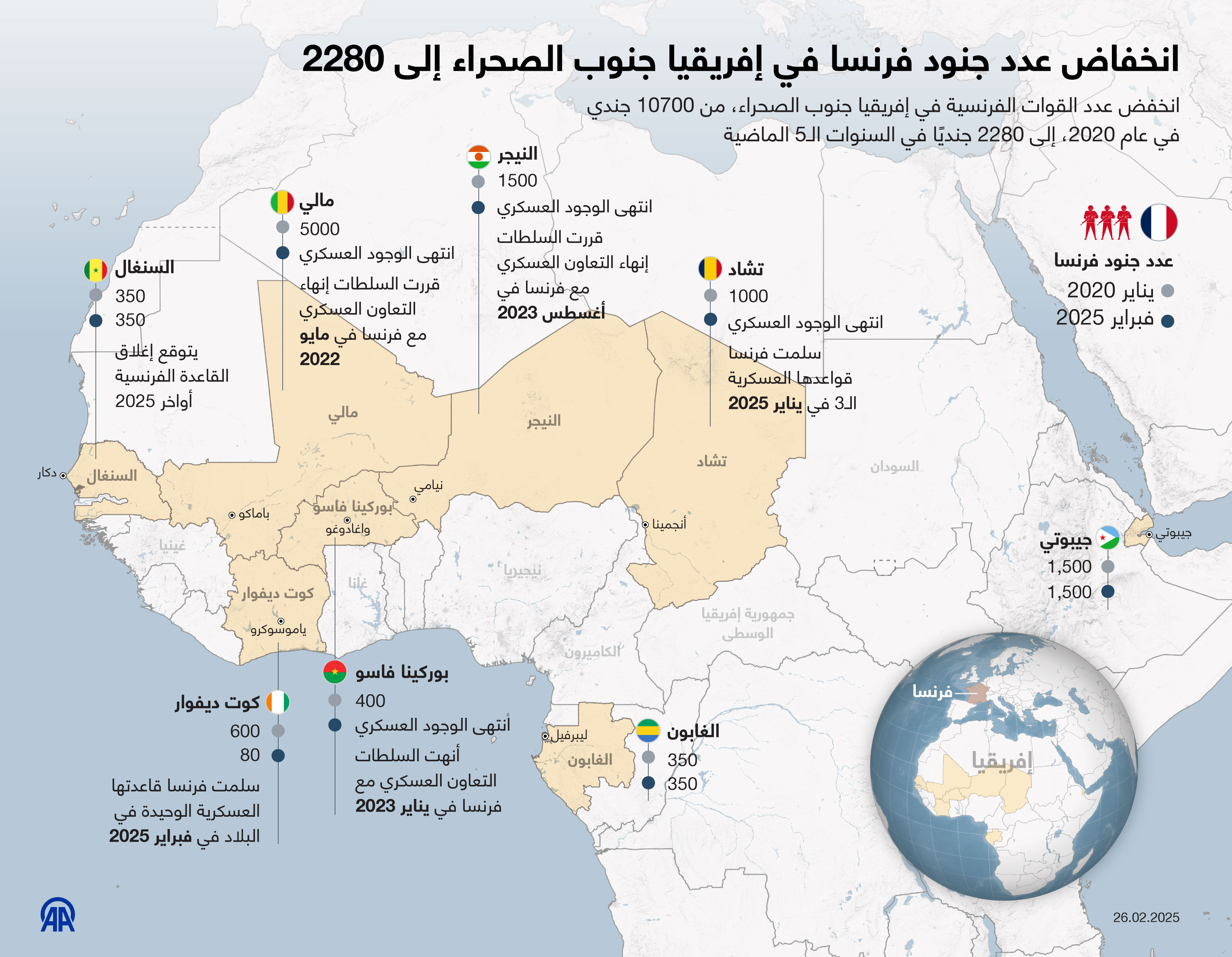 انخفاض عدد جنود فرنسا في إفريقيا جنوب الصحراء إلى 2280