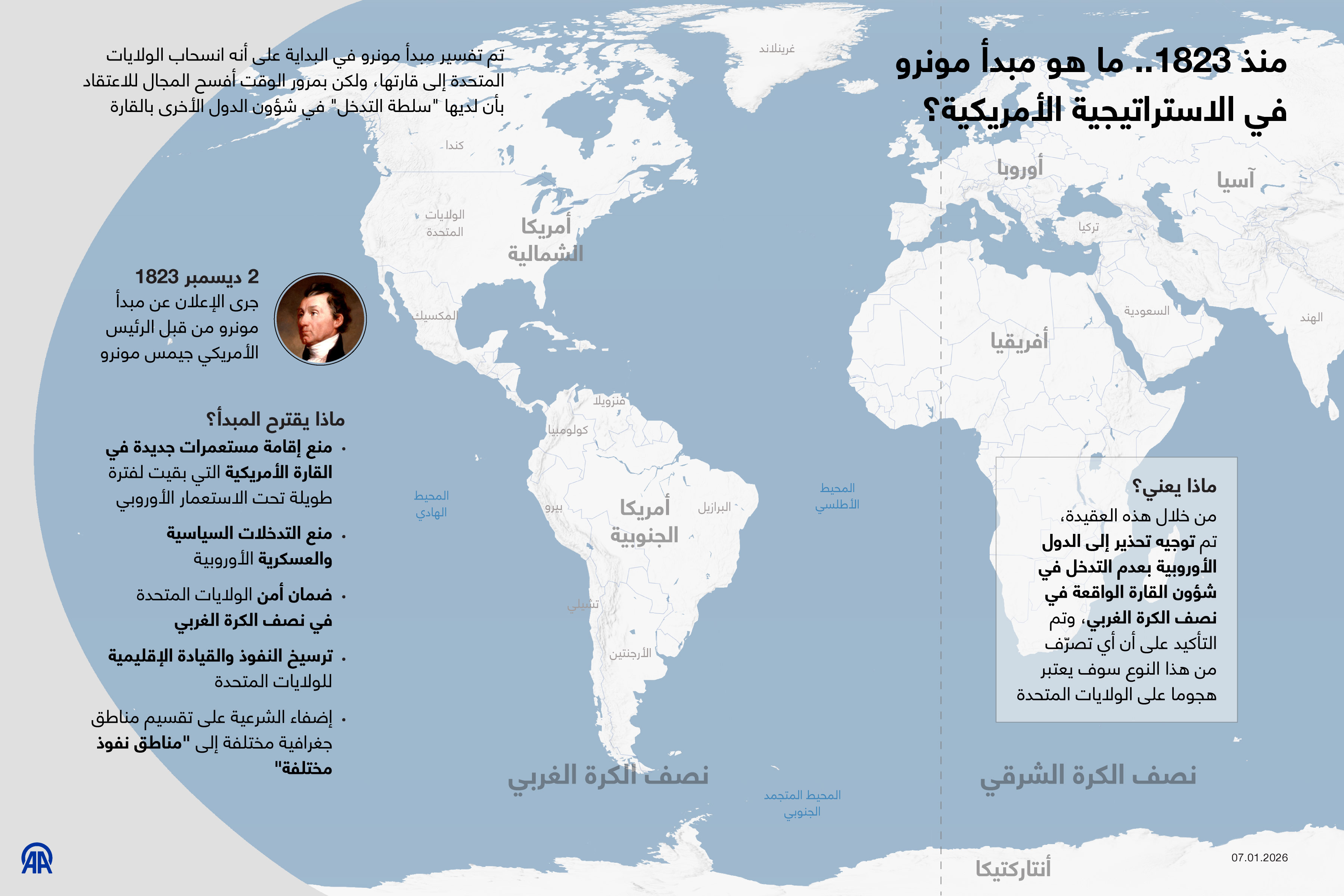 منذ 1823.. ما هو مبدأ مونرو في الاستراتيجية الأمريكية؟