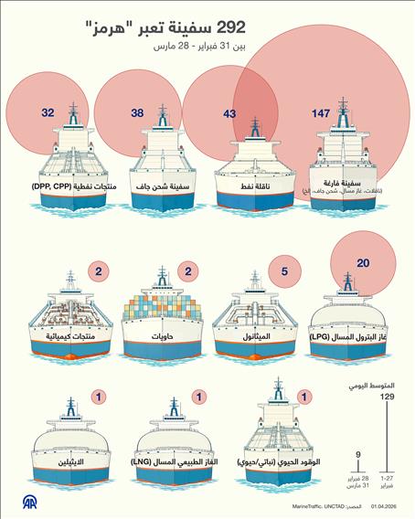 292 سفينة تعبر "هرمز" بين 31 فبراير - 28 مارس