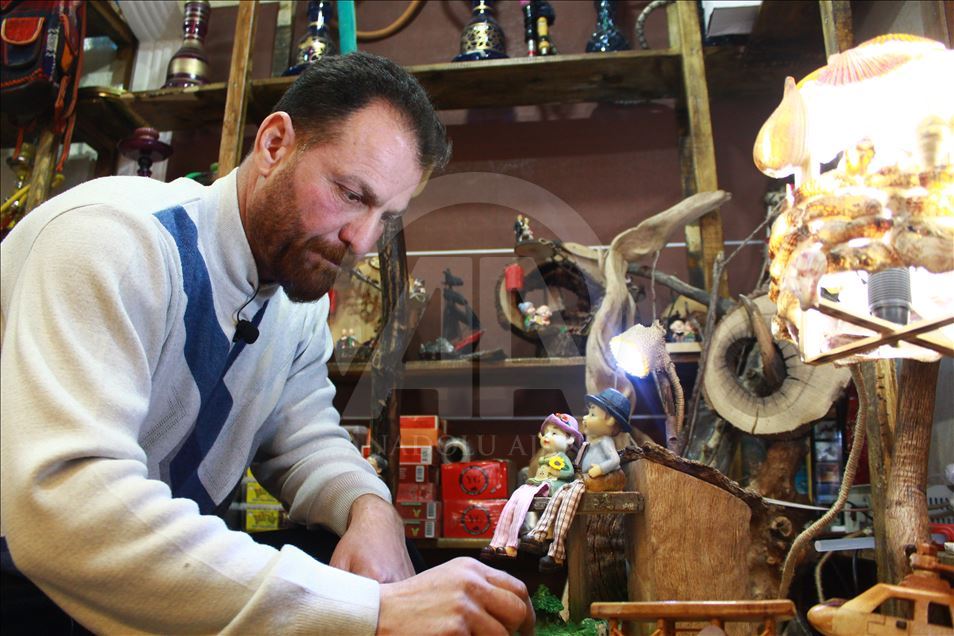 يعكف المواطن التركي حسن جتين (37 عاما) على تحويل قشور وجذوع الشجر إلى تحف فنية وبيعها لتوفير لقمة عيش له ولأفراد أسرته. وخلال حديثه للأناضول، قال جتين إنه اكتشف مهارته اليدوية بعد عدة محاولات لصناعة حلي لدى أحد أصدقائه، وأنه قرر فتح ورشة قبل عامين بولاية سعرت جنوب شرقي البلاد. ( Ali Tepe - وكالة الأناضول )