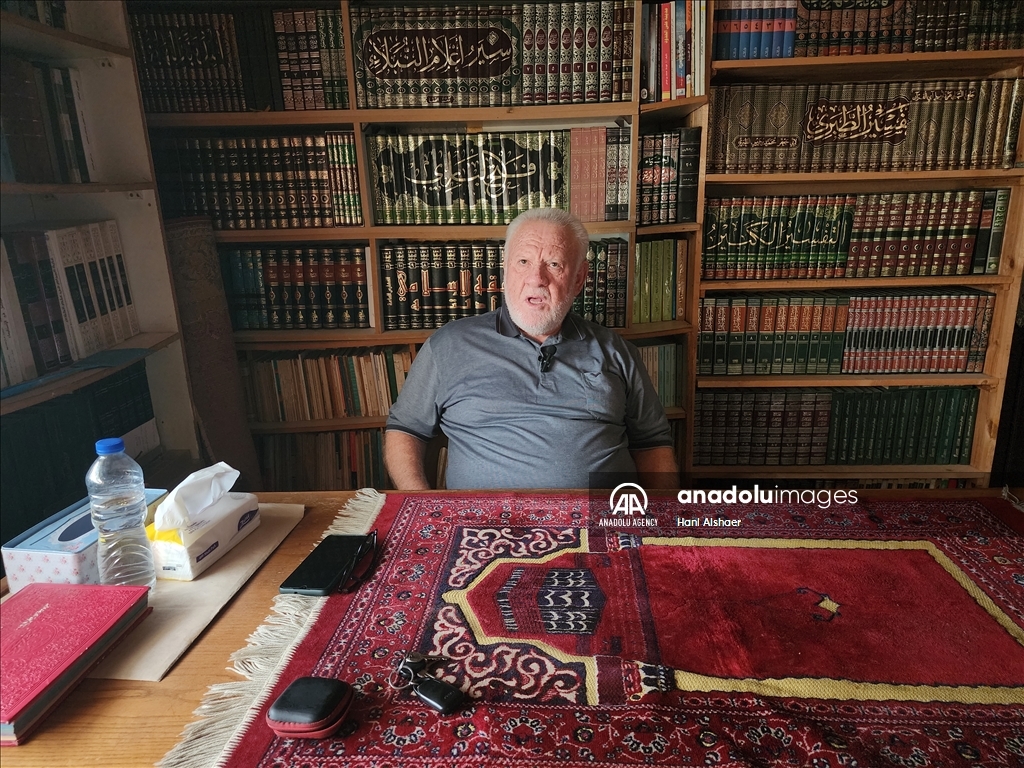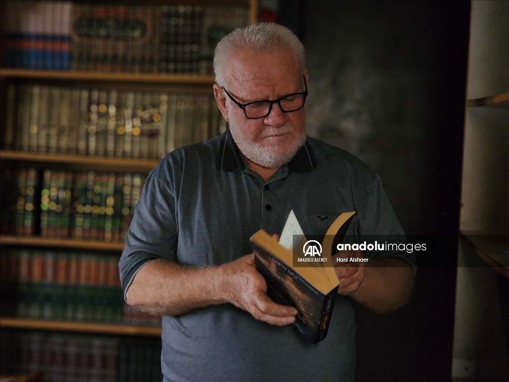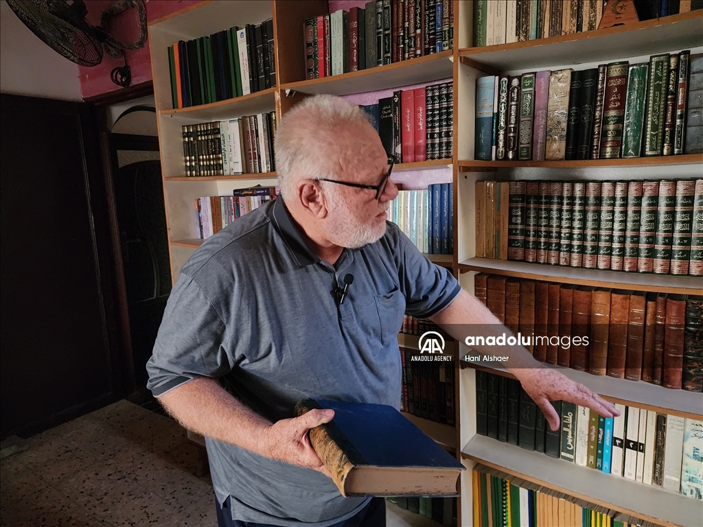 لم يخطر في بال الفلسطيني حسني محمد العطار (68 عاما) من مدينة رفح جنوبي قطاع غزة، أن يعرض مكتبته العلمية الخاصة للبيع يومًا ما، بعد سنوات طويلة من العمل المضني لبنائها وتجميعها. ودائما ما يخشى العطار أن تتعرض مكتبته العلمية للقصف أو التدمير أو الحرق في أي استهداف إسرائيلي مباشر أو غير مباشر، وهي نتاج سنوات من الكتابة والتأليف والتجميع، وهذا ما دفعه لبيعها في ظل الحرب الإسرائيلية على القطاع والمستمرة منذ السابع من أكتوبر الماضي. وتضم مكتبة العطار الموجودة داخل منزله في مدينة رفح جنوبي القطاع الآلاف من العناوين العلمية والأكاديمية القيمة، ما يجعلها كنزًا علميًا وثقافيًا مهمًا يبحث عنه الجميع، وفق قوله. ( Hani Alshaer - وكالة الأناضول )Hani Alshaer