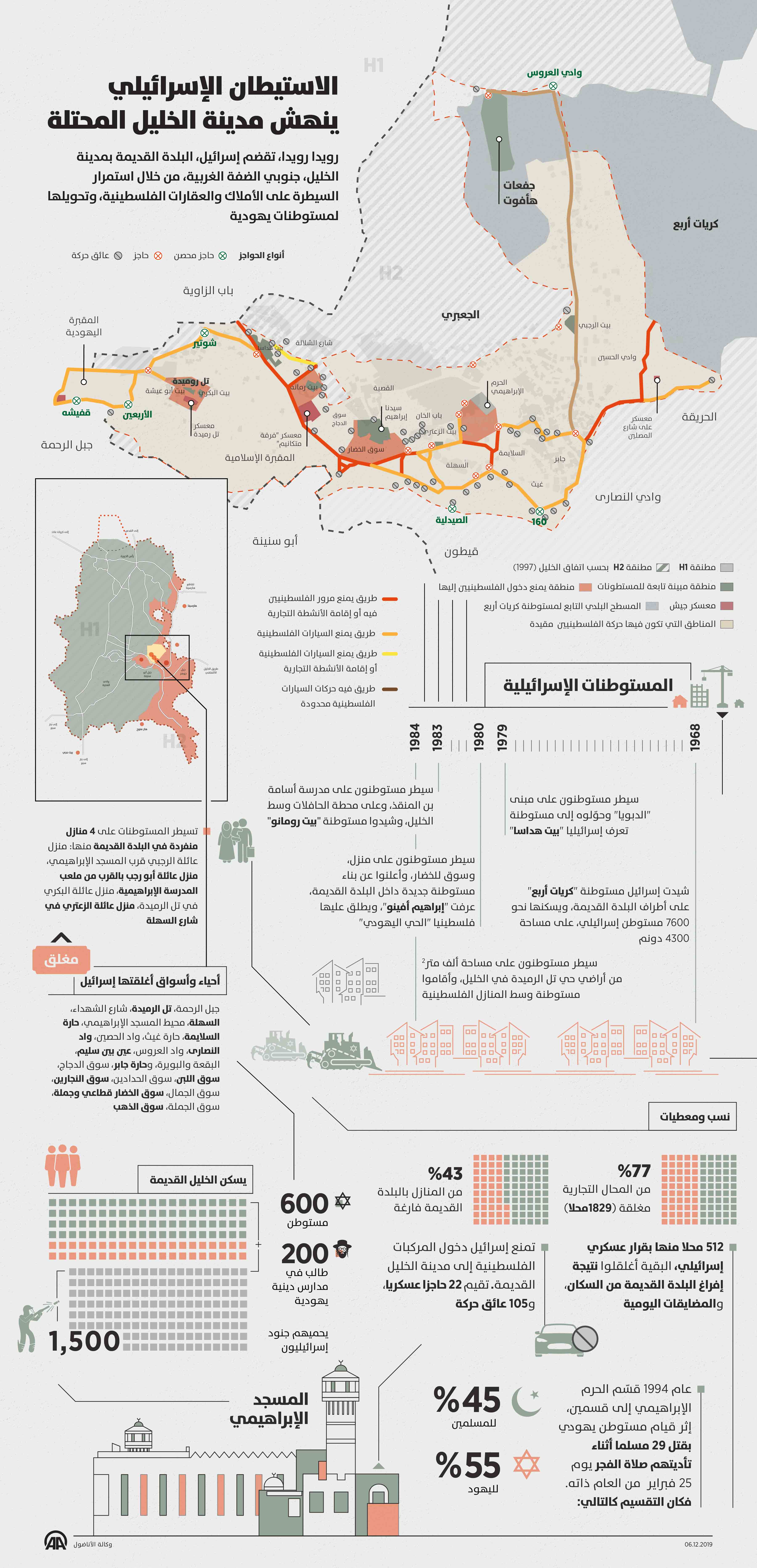 وتحتل إسرائيل البلدة القديمة من الخليل التي يسكنها نحو 600 مستوطن يهودي و200 طالب يحرسهم ألف و500 جندي إسرائيلي.