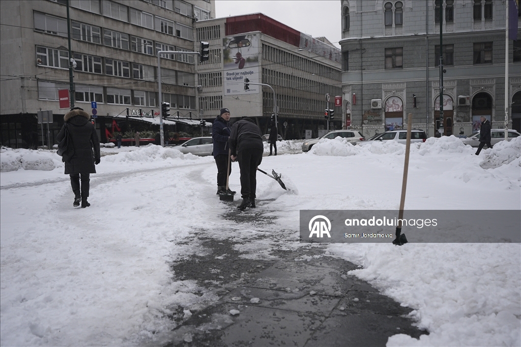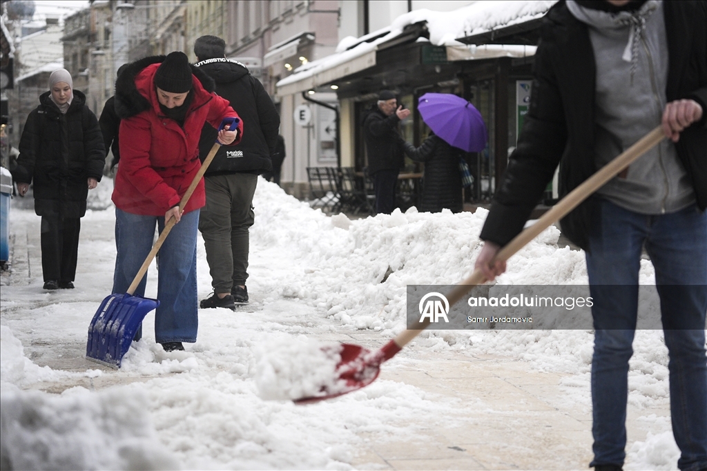 Ekipa Anadolu zabilježila je jutarnju atmosferu na sarajevskim ulicama, gdje su se u čišćenju snijega i leda komunalnim radnicima pridružili i građani.