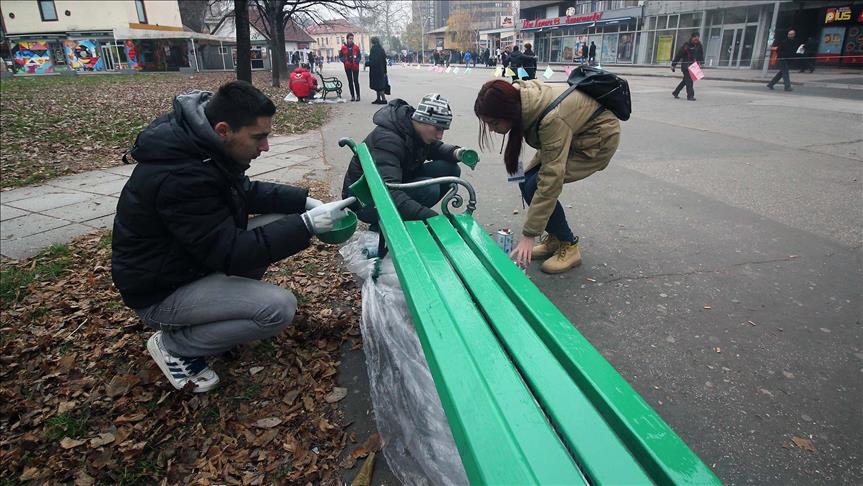 ZENICA (AA) - Mladi volonteri su danas farbanjem klupa u centru Zenice obilježili Međunarodni dan volontera, javlja Anadolu Agency (AA).