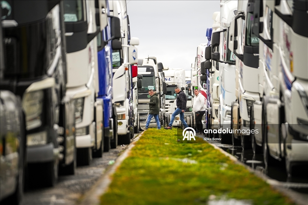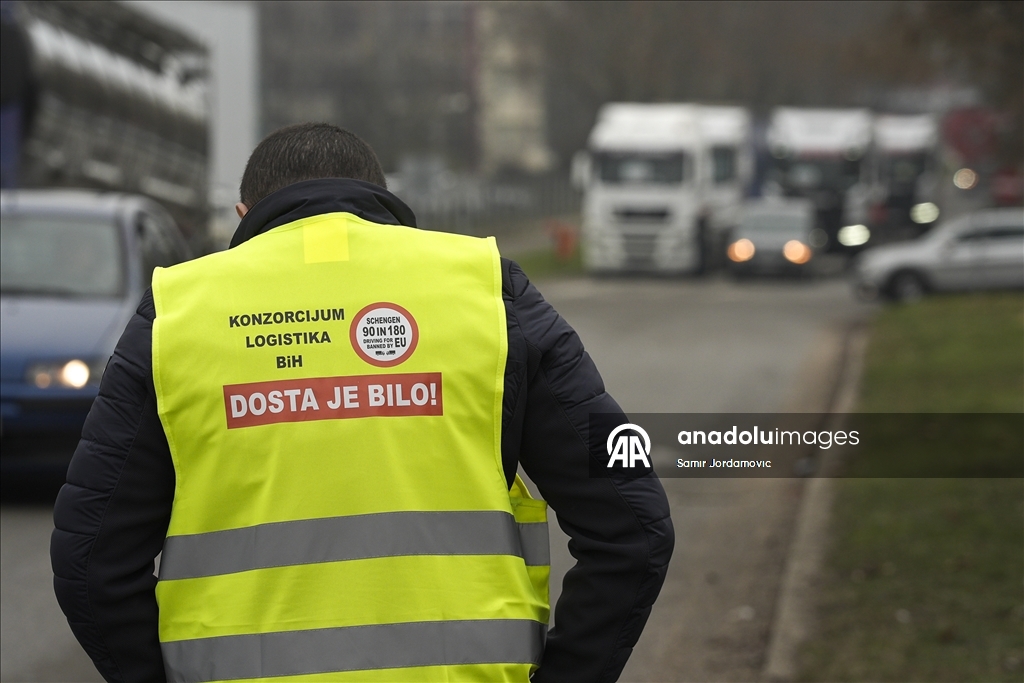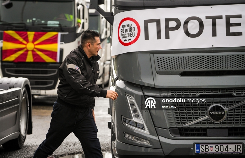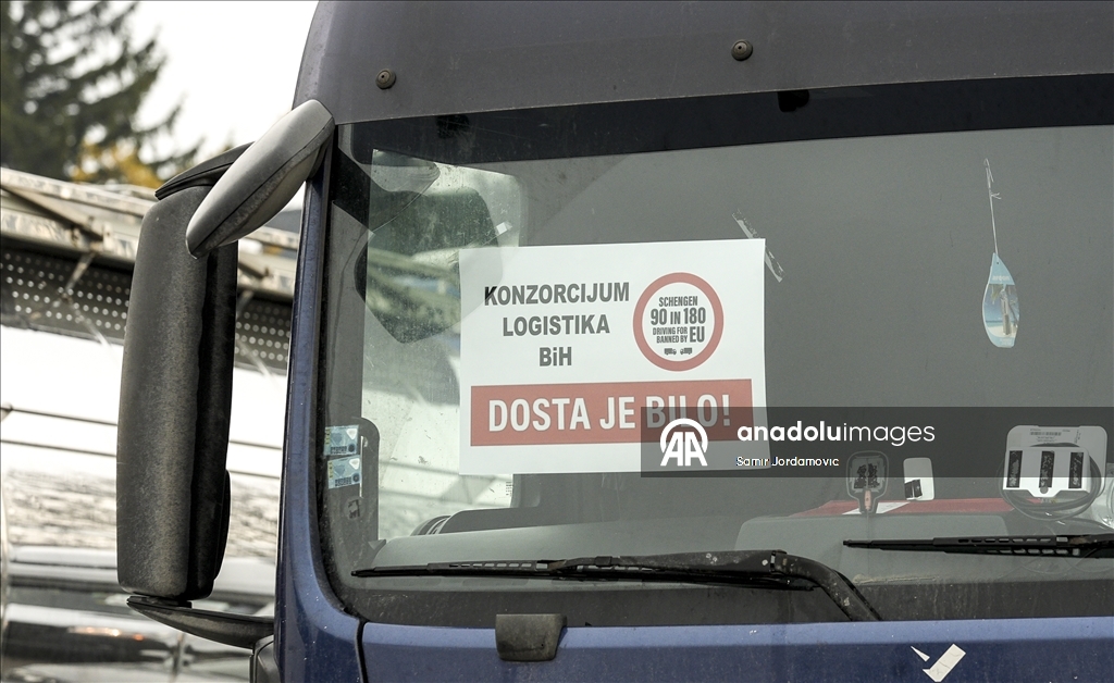 Počeli protesti profesionalnih vozača iz BiH, Srbije, Crne Gore i Sjeverne Makedonije na granicama EU Foto: Samir Jordamović /AA