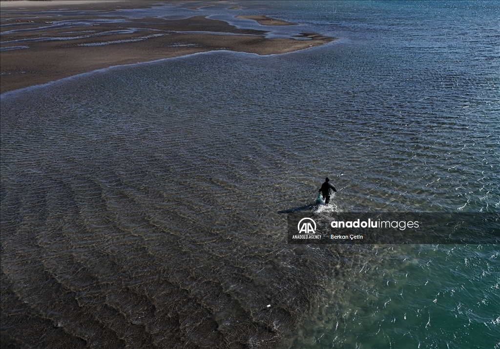 IZMIR, TURSKA - 11, FEBRUAR 2025: Pogled iz zraka na Egejsko more koje se povlači otprilike 300 metara od obale u okrugu Cesme u Izmiru. ( Berkan Çetin - Anadolu Agency )Berkan Çetin