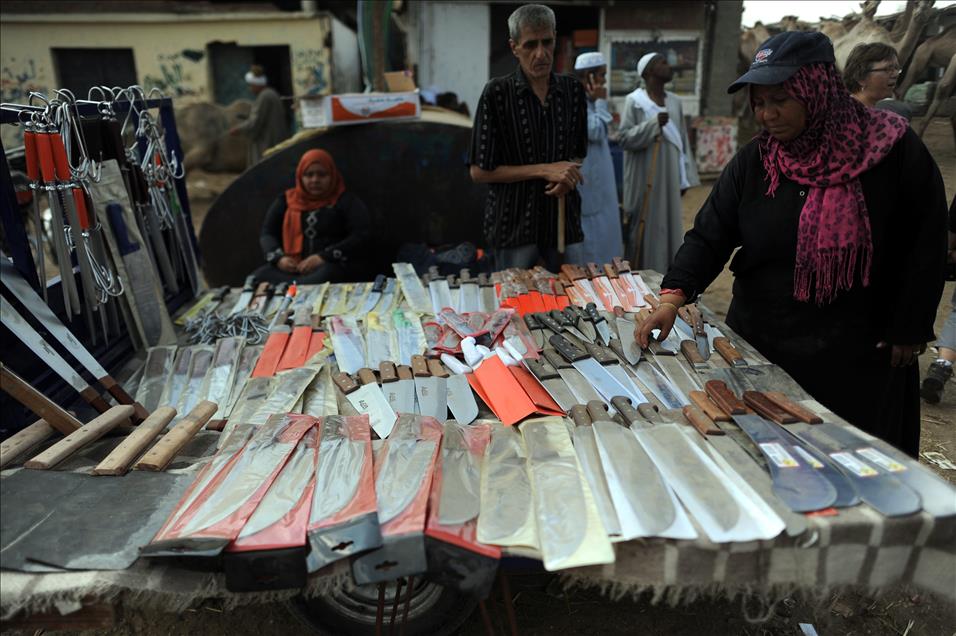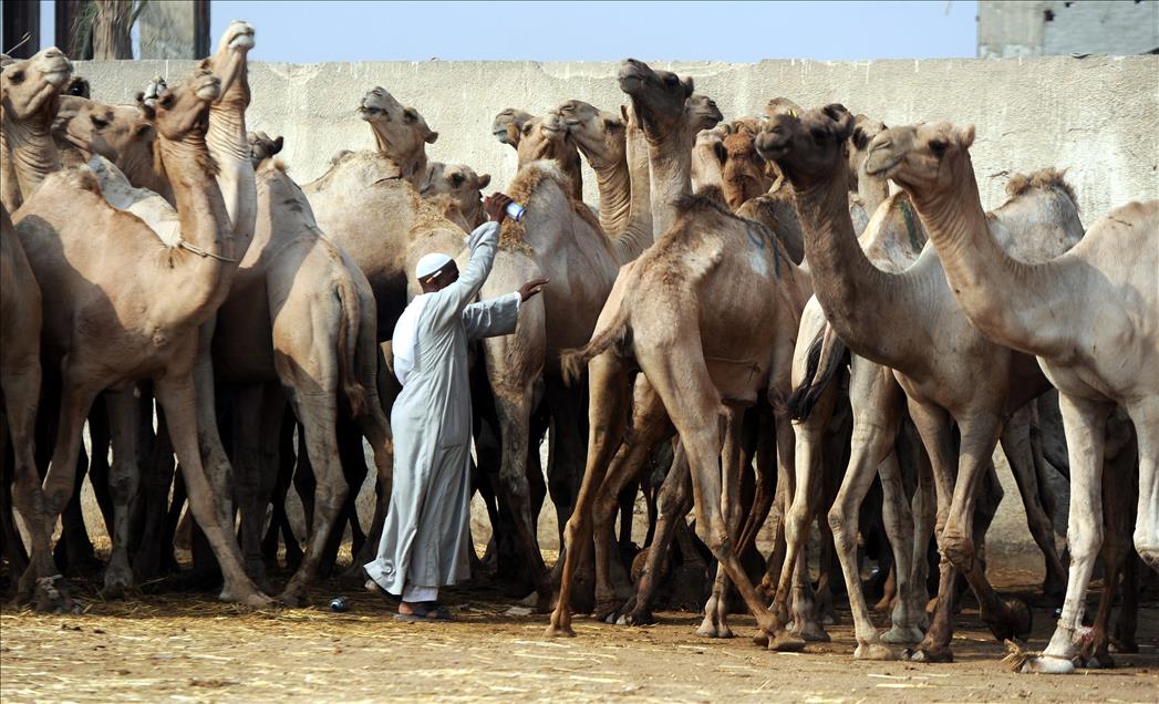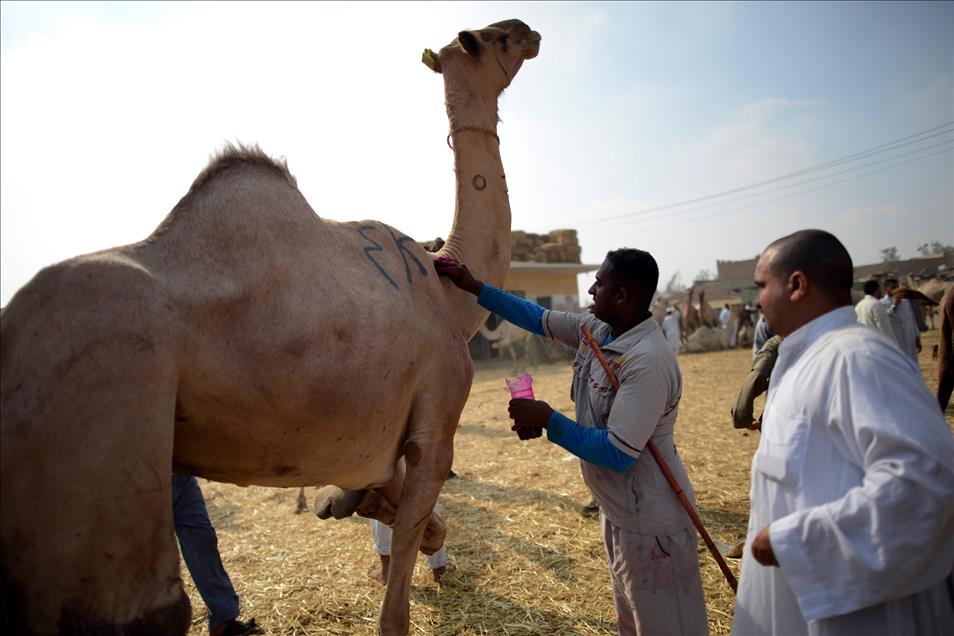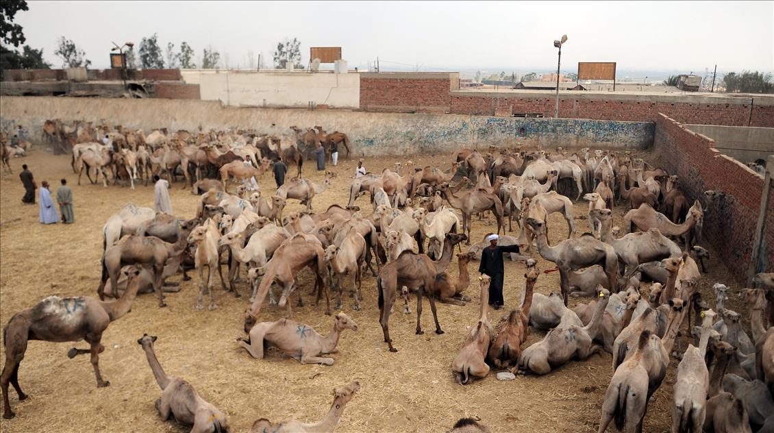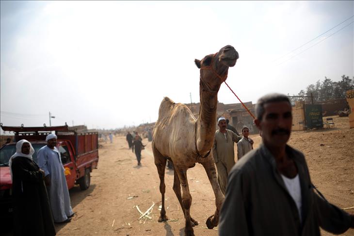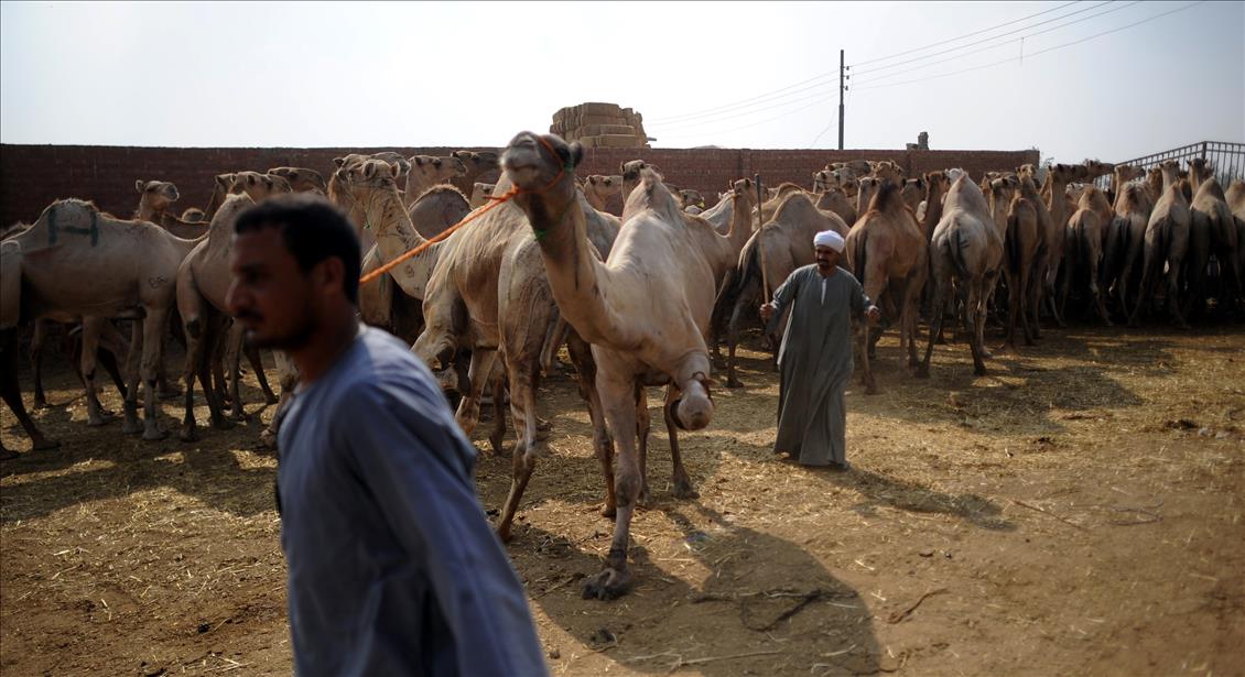 Mısır'ın en büyük kurbanlık pazarı olan Berkaş'ta Kurban Bayramı'nın yaklaşmasıyla birlikte kurban pazarlarına gelen develerin fiyatlarında diğer yıllara oranla büyük bir artış gözleniyor. (Mohammed Elshamy - Anadolu Ajansı)Mohammed Elshamy