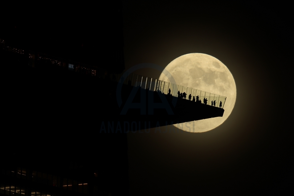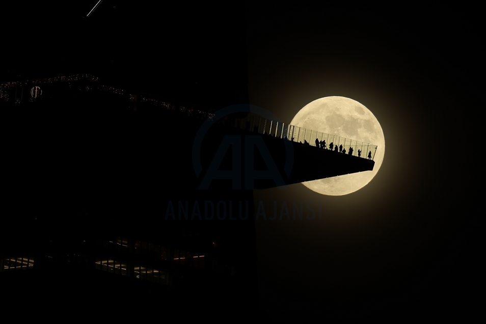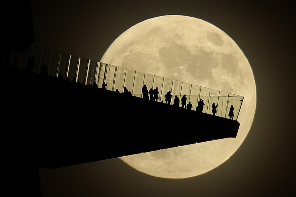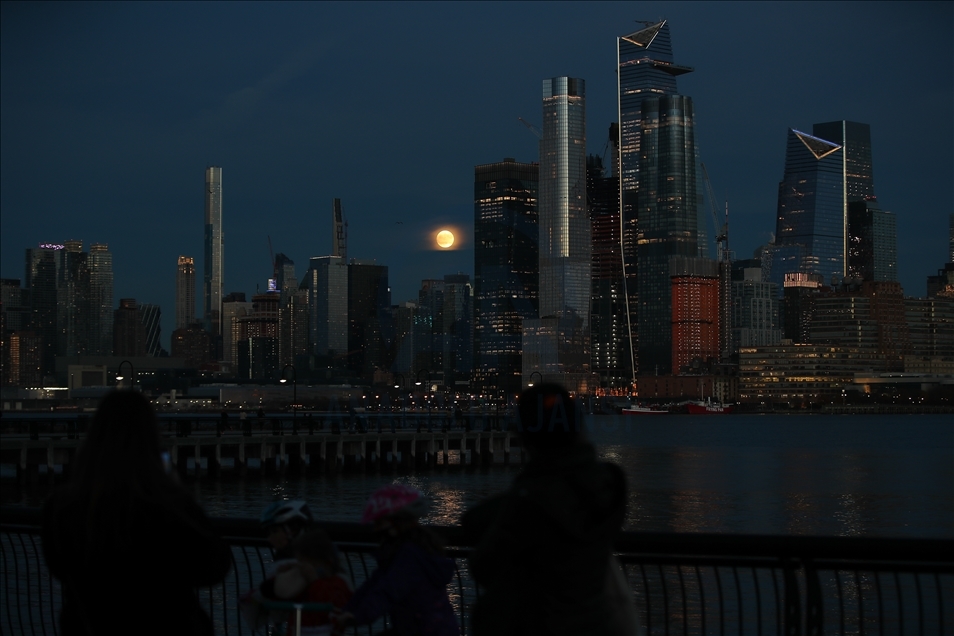 Fotografije prikazuju izlazak punog Mjeseca iza ljudi koji stoje na vidikovcu Edge, na Manhattanu, i iznad rijeke Hudson u blizini mosta George Washington u New Yorku ( Tayfun Coşkun - Anadolu Agency )Tayfun Coşkun