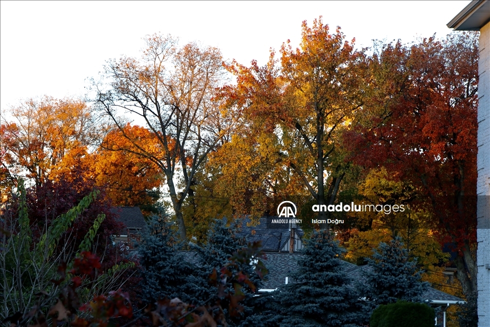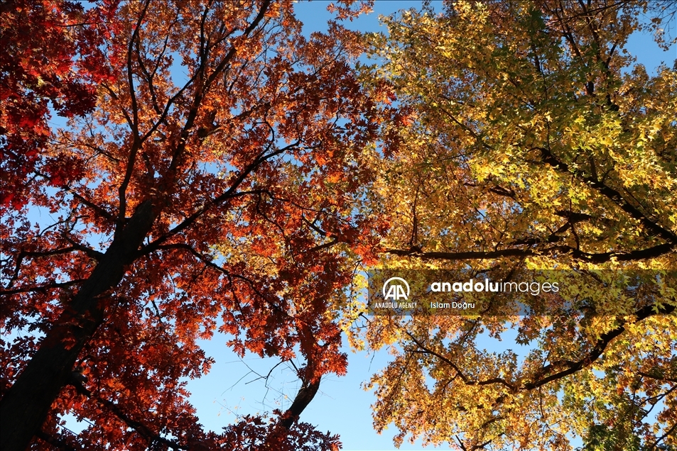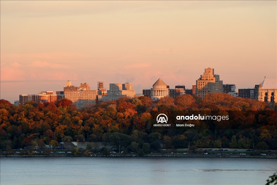 New Jersey, SAD - 13. novembar 2021: Drveće koje je s dolaskom jeseni postalo zlatnožuto kreiralo je predivan prizor u parku Cliffside u North Bergenu, u američkom New Jerseyju. Promjene zelene boje u crvenu, žutu, narandžastu, žuto-zelenu pa čak i ljubičastu, predstavljaju dio prirodnog procesa koji omogućava listopadnom drveću da preživi hladnu i oštru zimu. Za umjetnike je jesen uvijek bila nepresušan izvor ideja i vrijeme za prikupljanje nove energije. ( Islam Doğru - Anadolu Agency )Islam Doğru