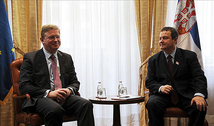 Evropski komesar za proširenje Stefan Fule izjavio je nakon današnjeg sastanka sa srbijanskim premijerom Ivicom Dačićem u Vladi Srbije u Beogradu da se nada da će Srbija ostvariti napredak u dijalogu sa Kosovom, što će biti jedna od uslova za dobijanje datuma za ulazak u EU, javio je dopisnik agencije Anadolija (AA)