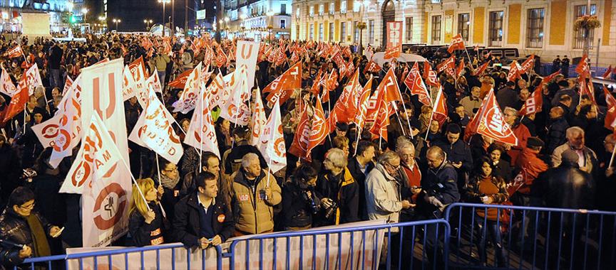 Zbog rezova koje je španska Vlada morala napraviti usred krize, sindikati radnika pozvali su na 24-satni štrajk, koji je počeo danas u Madridu na Trgu Sol.