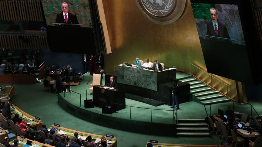 Addressing the 74th General Assembly, Erdogan highlighted issues of Israeli occupations in Palestine, Syrian crisis, racism, nuclear armament, fight against Daesh, and Cyprus.