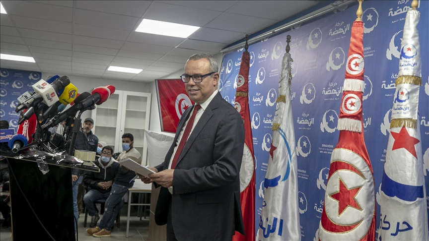 "President Kais Saied bears responsibility for the calls to demonstrate in front of the movement's headquarters and the home of our leader, Rachid Ghannouchi," movement spokesman Imad Khamiri said during a press conference.