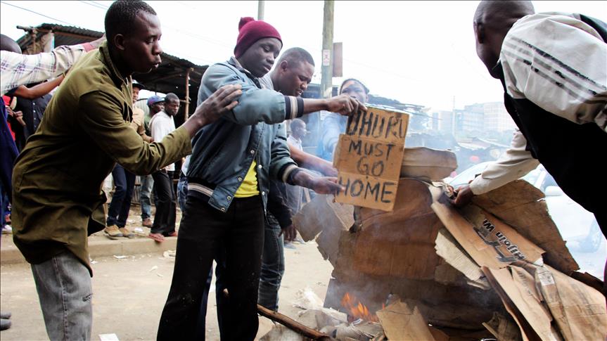 In the Mathare slums, Anadolu Agency witnessed hundreds of youths burning tires and wooden racks -- generally used by vegetable vendors -- before a heavy police presence, including two helicopters.