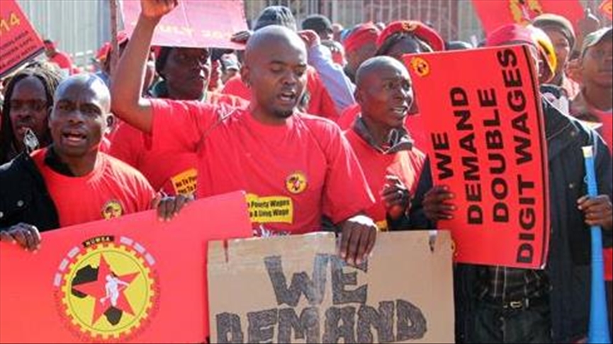 Thousands of union members dressed in red T-shirts carried placards calling for pay rises as they marched to the iconic Mary Fitzgerald Square in Johannesburg on the first day of the strike. Marches are expected in other provinces throughout the country.