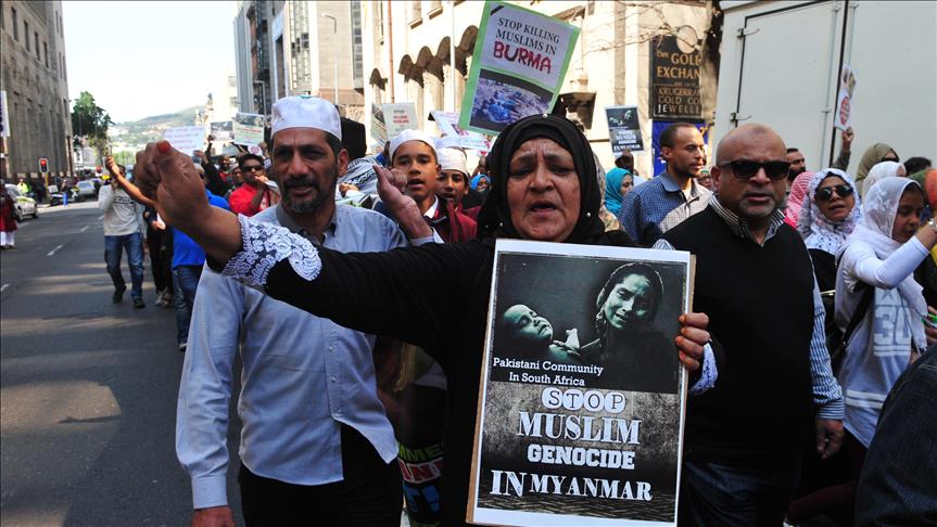 About 2,500 protestors gathered outside Myanmar’s Embassy in South Africa’s capital Pretoria Friday to condemn the ongoing killings of Rohingya Muslims in Myanmar’s Rakhine state.
