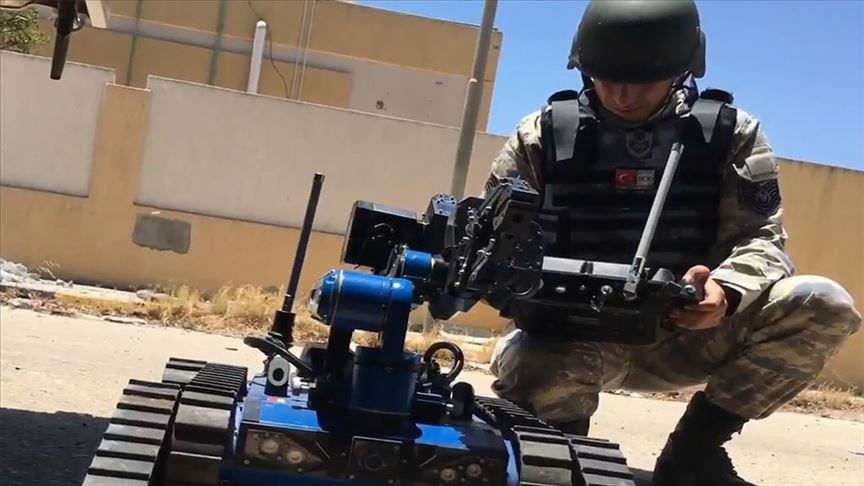 A Turkish-made robot was used to safely detonate improvised explosive devices (IED) and destroy ammunition in Libya.
