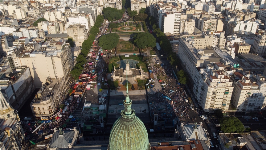 BUENOS AIRES, ARGENTINA - DECEMBER 29: Pro-choice demonstrations, wearing green things, gather outside the National Congress as senators decide on legalization of abortion, in Buenos Aires, Argentina on December 29, 2020. Anti abortion demonstrators wore blue things during the protest. The proposal authorizes legal, voluntary and free interruption of pregnancy until the 14th week while allowing doctor's conscientious objection. It is the ninth bill to legalize abortion treated by the Argentine Congress and the first one publicly supported by the president of the country. ( Muhammed Emin Canik - Anadolu Agency )