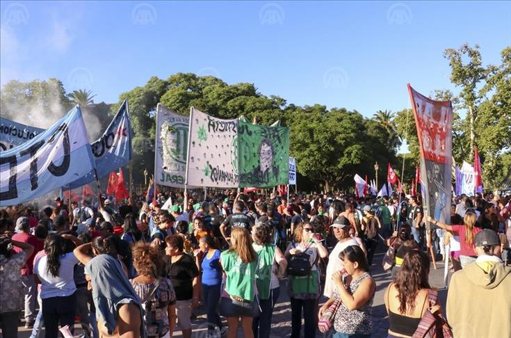 Non-governmental organizations, trade unions and student clubs gathered at the University of Buenos Aires and marched to the U.S. embassy.