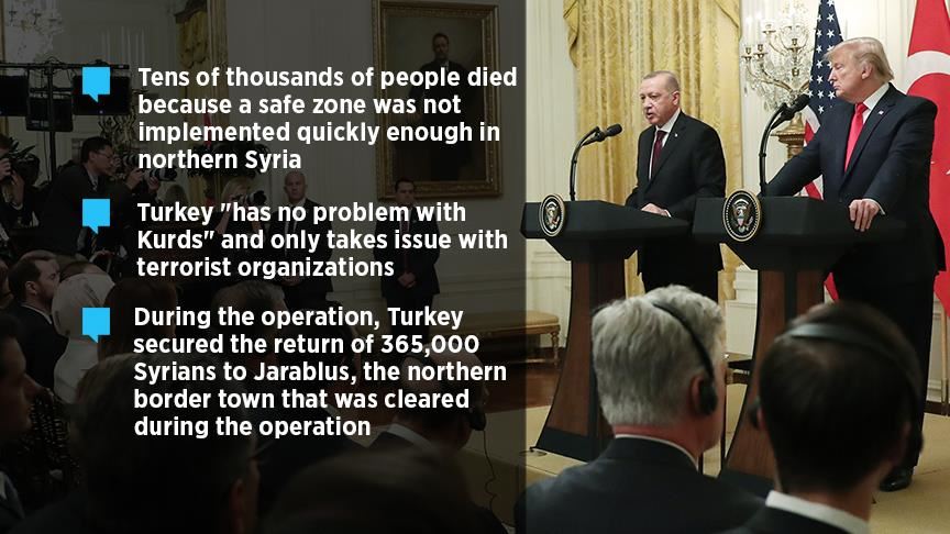 Tens of thousands of people died because a safe zone was not implemented quickly enough in northern Syria, Turkish President Recep Tayyip Erdogan said Wednesday.