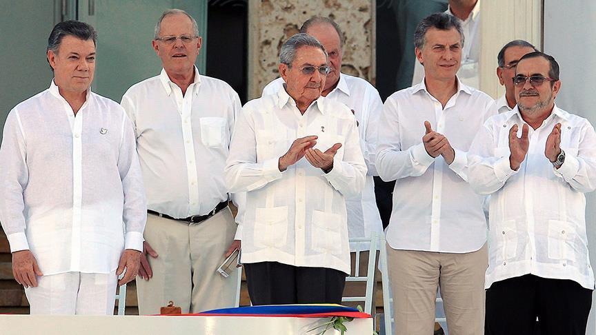 Fifteen heads of state, including Raul Castro of Cuba, the host nation for the peace talks since November 2011, Spanish King Juan Carlos, U.S. Secretary of State John Kerry and UN chief Ban Ki-Moon.