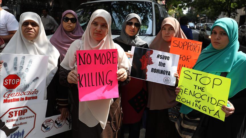 Hundreds gathered near the United Nations headquarters in New York City to protest the ongoing violence targeting the Rohingya Muslim minority in Myanmar.