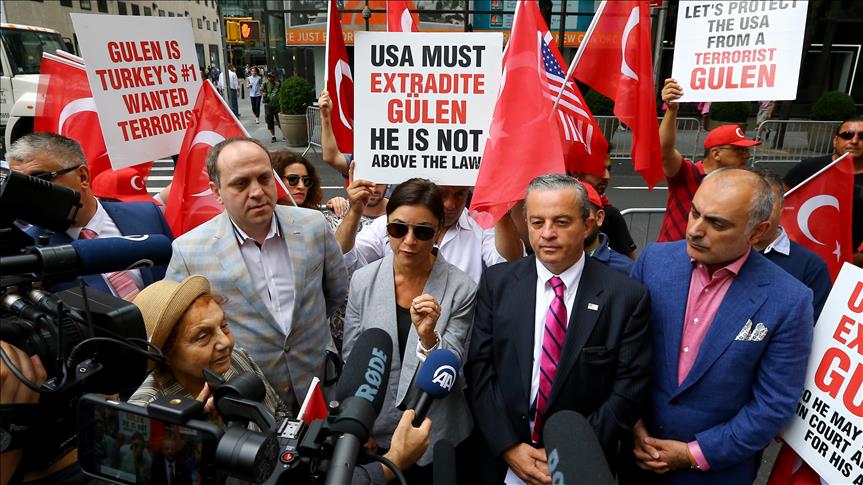 Turkish Americans and media members on Thursday demonstrated outside the world headquarters of NBC News in New York, slamming the organization for a false report on the night of a recent putsch attempt in Turkey.