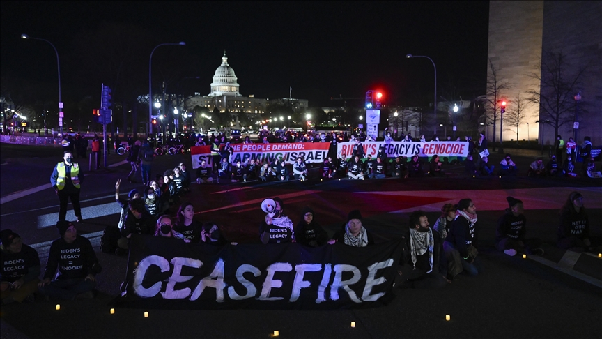 "We demand that D.C. calls for ceasefire," the protestor continued chanting, calling for an end to the "genocide" in Gaza.