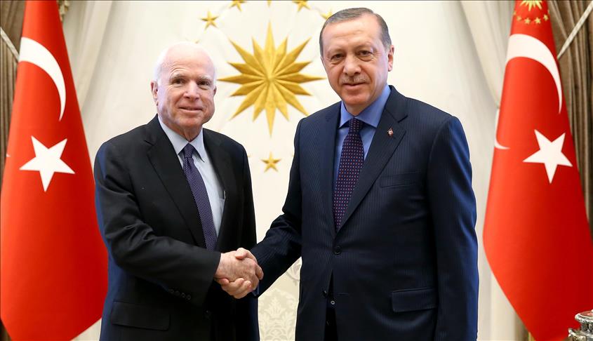 “I had a warm and constructive meeting with President Erdogan today. I have been a longstanding champion of the U.S.-Turkey alliance based on shared democratic values," McCain said in a statement late Monday. "As we see growing disorder in Europe and the Middle East, I believe this alliance is more vital than ever."