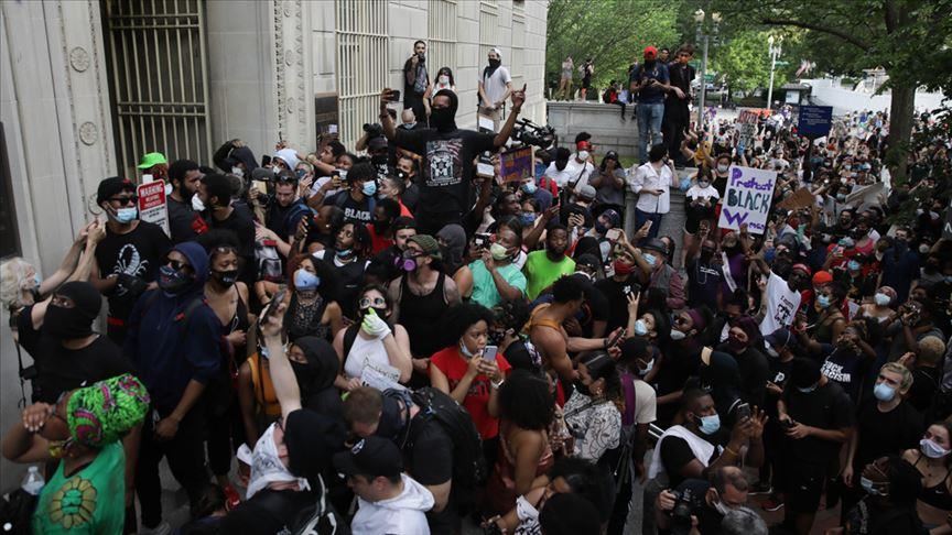 WASHINGTON, USA - MAY 29: A police car is seen as hundreds of demonstrators rally hours after the arrest of a white police officer involved in the death of a black man George Floyd in the state of Minnesota on May 29, 2020 in Washington D.C. United States. Floyd, 46, a black man, was arrested Monday after reportedly attempting to use a counterfeit $20 bill at a local store. Video footage on Facebook showed him handcuffed and cooperating. But police claimed he resisted arrest. A white officer kneeled on his neck, despite Floyd’s repeated pleas of "I can't breathe." Former police officer Derek Chauvin was charged with third-degree murder and manslaughter, according to Hennepin County Prosecutor Michael Freeman. Minneapolis, Minnesota Mayor Jacob Frey said Friday he imposed a mandatory curfew because of ongoing protests regarding the death of George Floyd. Protestors made their way to the White House where they faced a police response with some clashing with the secret service members. ( Yasin Öztürk - Anadolu Agency )