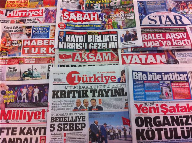 Most Turkish dailies on Wednesday covered Prime Minister Ahmet Davutoglu's call for all sides to work together to set a peace-making example in Cyprus.