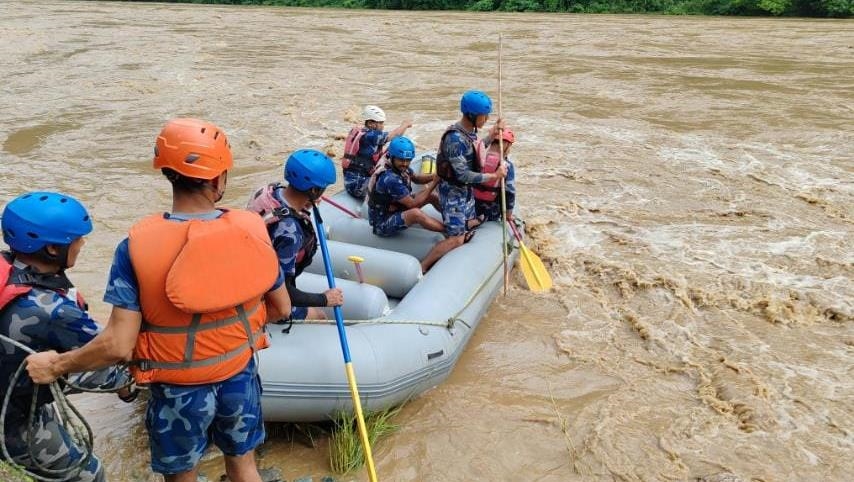 A bus traveling from capital Kathmandu to Gaur, near Indian border, rolled into the river on Friday after a landslide in southwestern Chitwan district, with three passengers reportedly jumping out and saving themselves. Another passenger bus traveling toward Kathmandu also rolled into the river.
