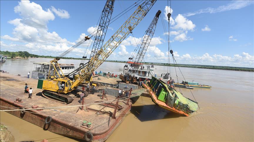 Cranes and other heavy lifting machinery have been utilized since Tuesday to raise the 40-ton Aung Soe Moe Kyaw, which sank Saturday carrying around 300 passengers.