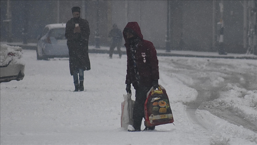 SRINAGAR, KASHMIR, INDIA- JANUARY 03: A man walks as it snows in Srinagar on January 03, 2021. Indian Meteorological Department has predicted moderate snowfall across Kashmir and heavy snowfall in higher reaches. The 270 kilometer road Srinagar-Jammu highway the only road linking Kashmir to other parts of the country was closed after fresh snowfall. At least fifteen persons were injured in different road accidents across Jammu and Kashmir due to slippery roads, a local news agency reported. ( Faisal Khan - Anadolu Agency )